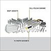 Este conjunto de herramientas mecánicas de 247 piezas incluye trinquetes y llaves roscadas, un conductor de bits con bits especiales y para tuercas, llaves combinadas y llaves hexagonales para manejar la mayoría de los trabajos bajo el capó o en cualquier otro lugar. La caja duradera con pestillos de metal de los juegos de herramientas para mecánicos proporciona organización y fácil almacenamiento para viajes. Los trinquetes de 72 dientes están construidos para la eficiencia con un botón de liberación rápida para conectar y quitar fácilmente las llaves roscadas. Estas herramientas para hombres cuentan con un acabado cromado pulido para resistencia a la corrosión.
