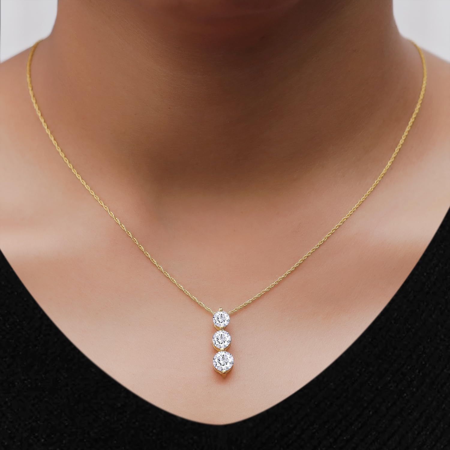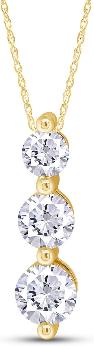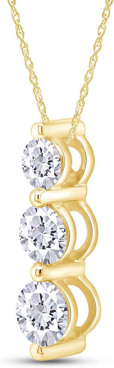 Round Cut Simulated Birthstone Three Stone Journey Pendant Necklace Jewelry for Women in 14k White Gold Over Sterling Silver Along with 18" Silver Chain