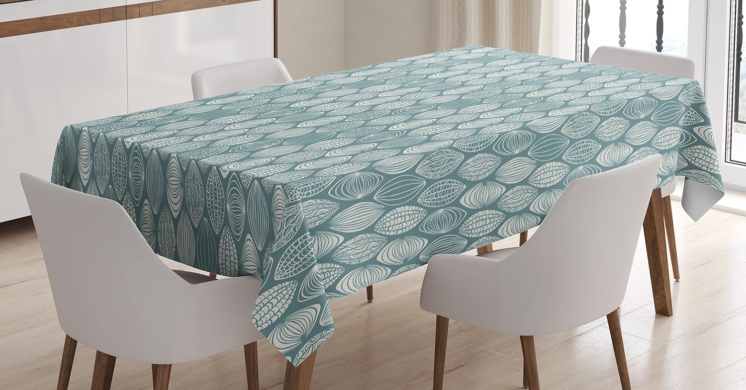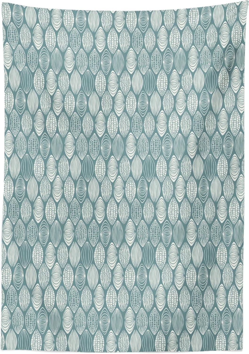 Ambesonne Geometric Tablecloth, Different Type of Oval Doodle Round Leaf Textured Harvest Graphic, Rectangular Table Cover for Dining Room Kitchen Decor, 60" X 90",Turquoise Coconut