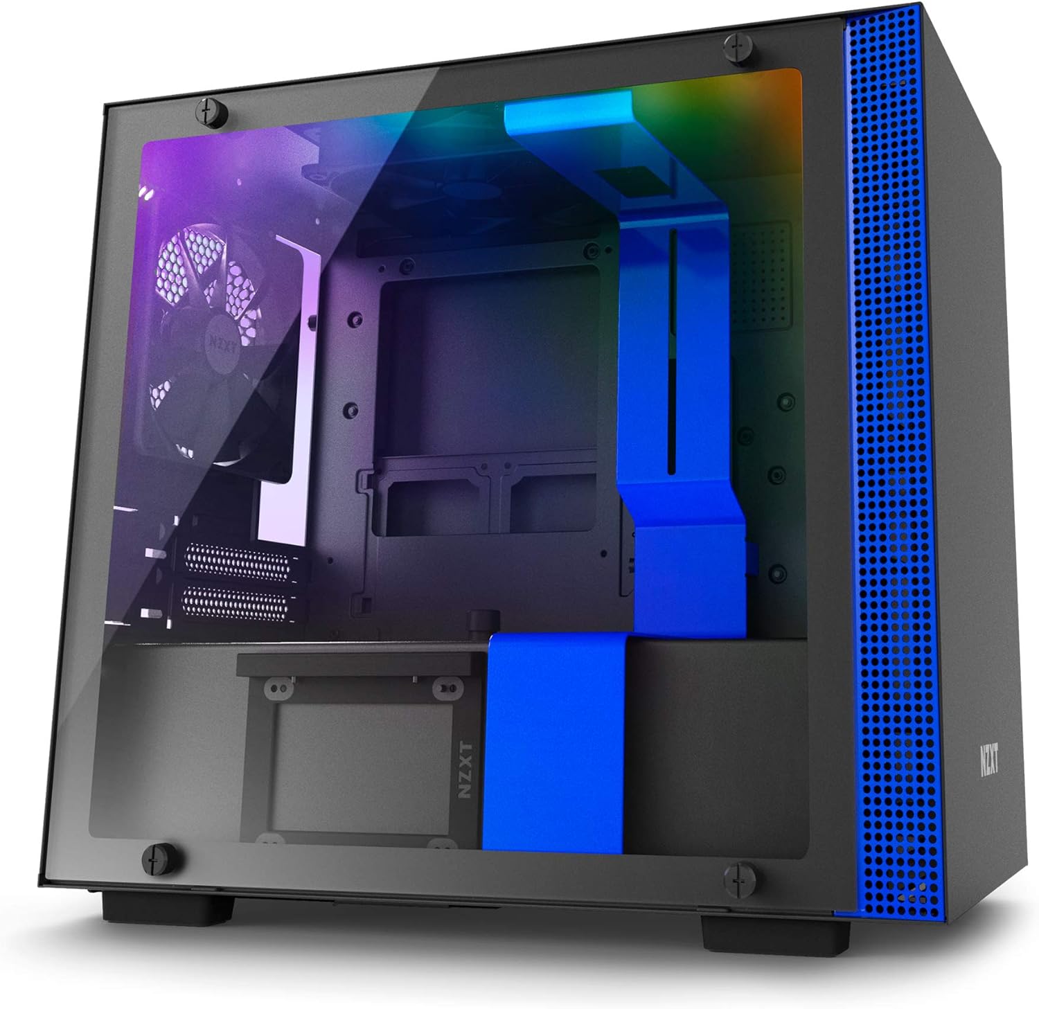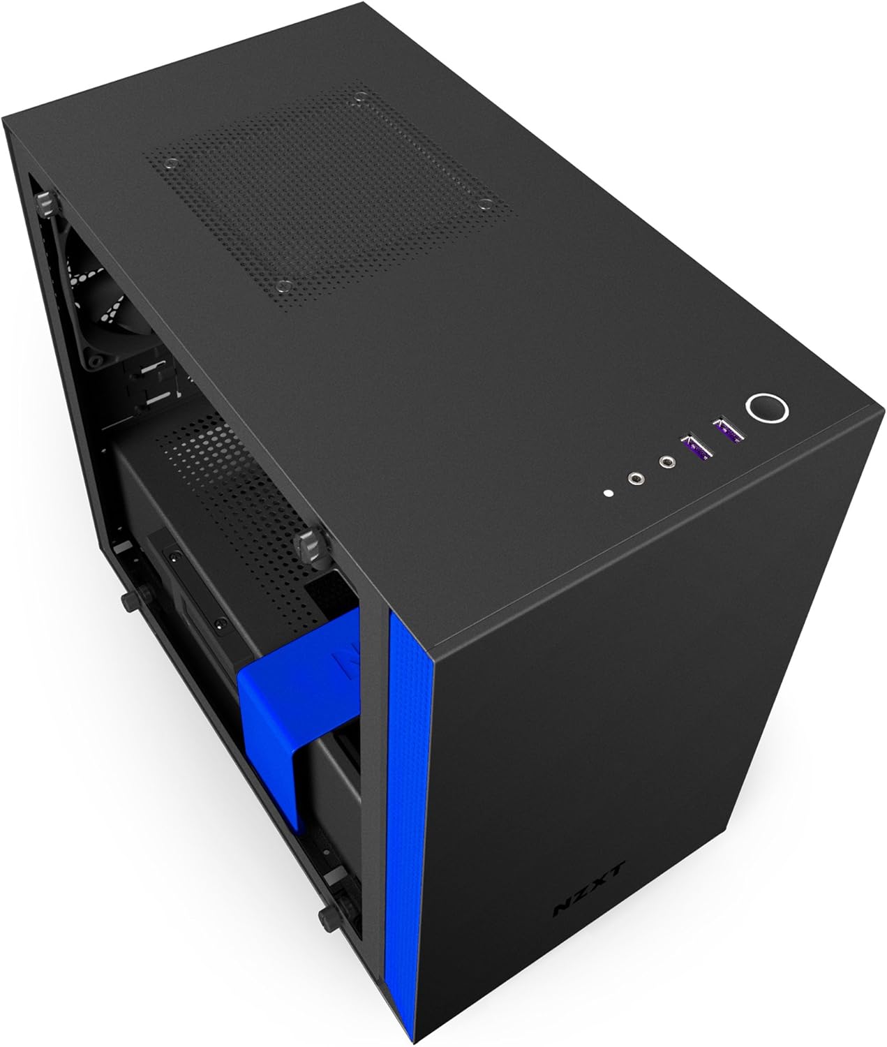NZXT H200i - Mini-ITX PC Gaming Case - CAM-Powered Smart Device - Tempered Glass Panel - Water-Cooling Ready - Black/Blue - 2018 Version