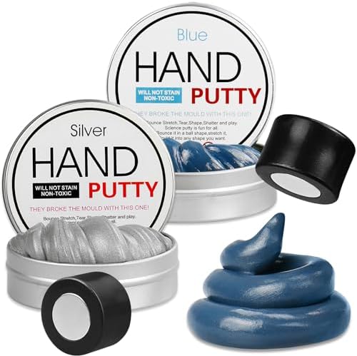 2 Pack Magnetic Slime Putty, Soft Magic Slime Hand Therapy Putty Fidget Game Stress Relief Thinking Educational Toy with Upgraded Magnet Christmas Birthday Gifts for Kids Adults(Blue,Silver)