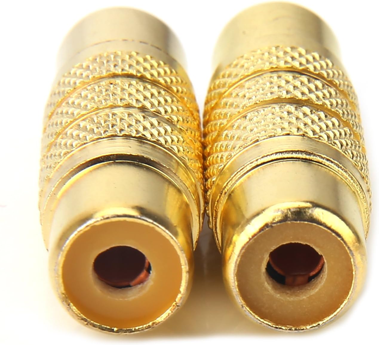 Features: * Gold-plated connectors resist corrosion and ensure minimal signal loss * 360 degree grip treads help easy plugging and unplugging * Made of solid brass copper, with a much longer service life compared with those plastic one Connectors: - Connector 1: RCA Female Jack - Connector 2: RCA Female Jack Universal Compatibility: Devinal RCA Female to Female Coupler Adapter is designed for home entertainment and video game use Package include: 2 * Devinal Gold Plated Metal RCA Female to Female Coupler AdapterLifetime Product Support And Customer Service and 6 Month Warranty (Free Replacement or Full Refund). Please contact us via email if you have any questions.