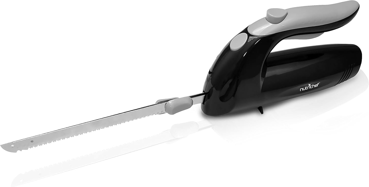 NutriChef Cuchillo Eléctrico de 8.9' de Carga Premium Mejorado, Cuchillo de Despiece, Hojas Serradas, Ligero, Diseño Ergonómico de Fácil Agarre, Fácil Retirada de Hojas, Ideal para Acción de Gracias, Carne y Queso, Negro