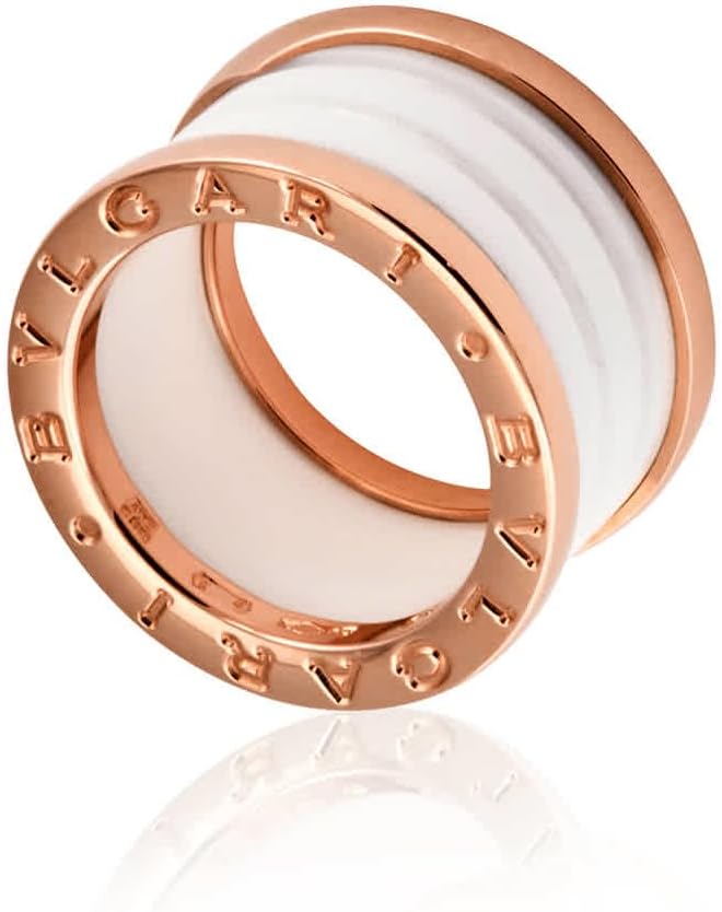 BVLGARI B.Zero1 4-Band 18 kt Rose Gold and White Ceramic Ring, Brand Size 52 (US Size 6.25)