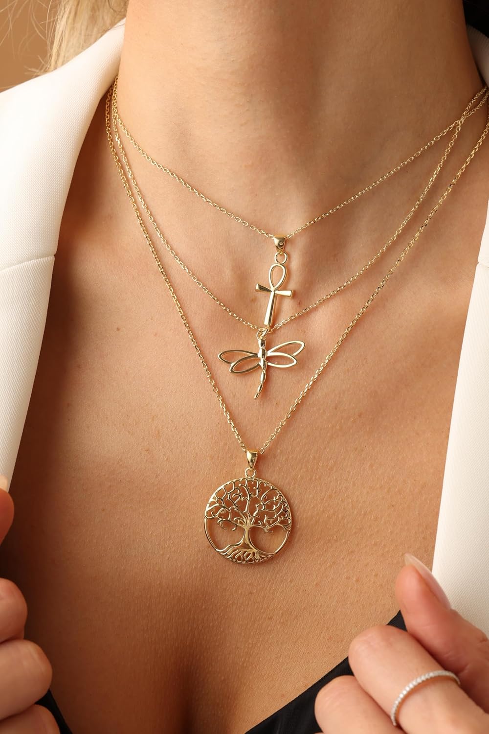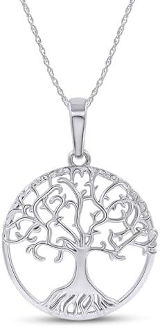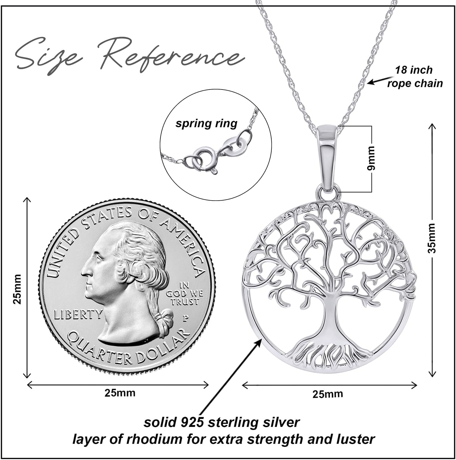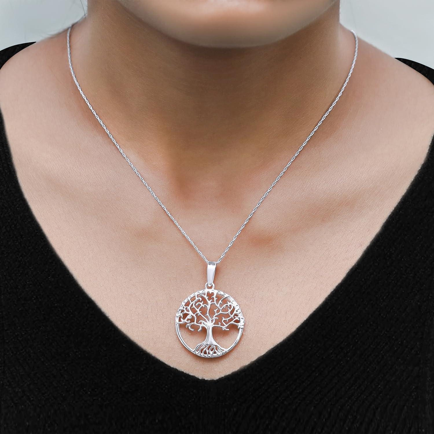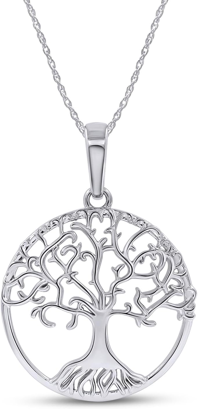 Tree of Life Charm Pendant Necklace for Women In 14K White,Rose Or Yellow Gold Plated Sterling Silver Jewelry Along With 18" Rope Chain Gift For Her, Wife