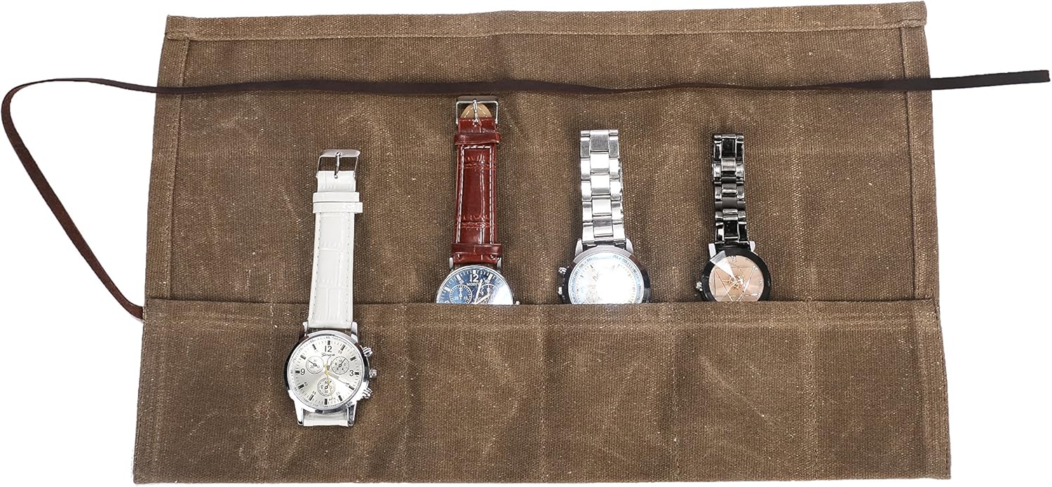 Waxed Canvas Watch Roll Handmade Waterproof Multi-Purpose Travel Case Watch Roll-up Organizer Holds 6 Wristwatches Best Gift for Him Her Boyfriend Girlfriend Mom Dad Wife & Husband HGJ03-I