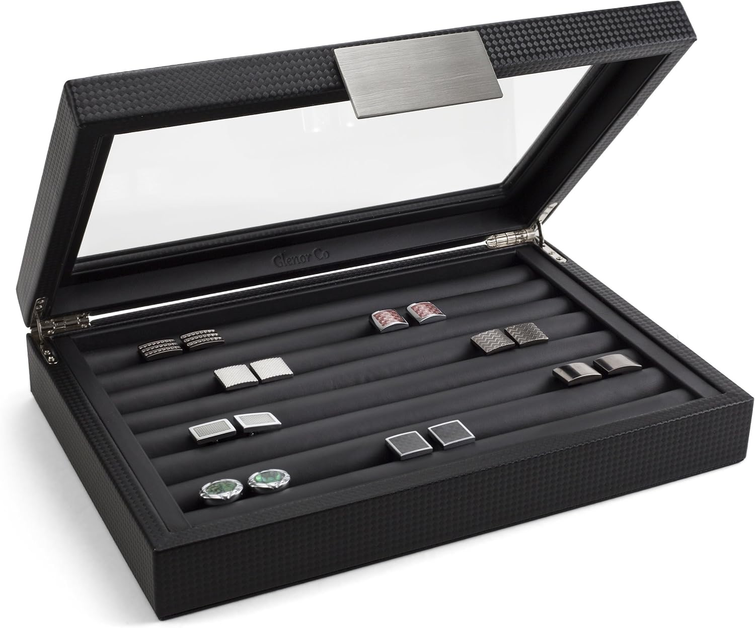 Cufflink Box for Men - Holds 70 Cufflinks - Luxury Display Jewelry Case Design - Metal Buckle Holder, Large Glass Top
