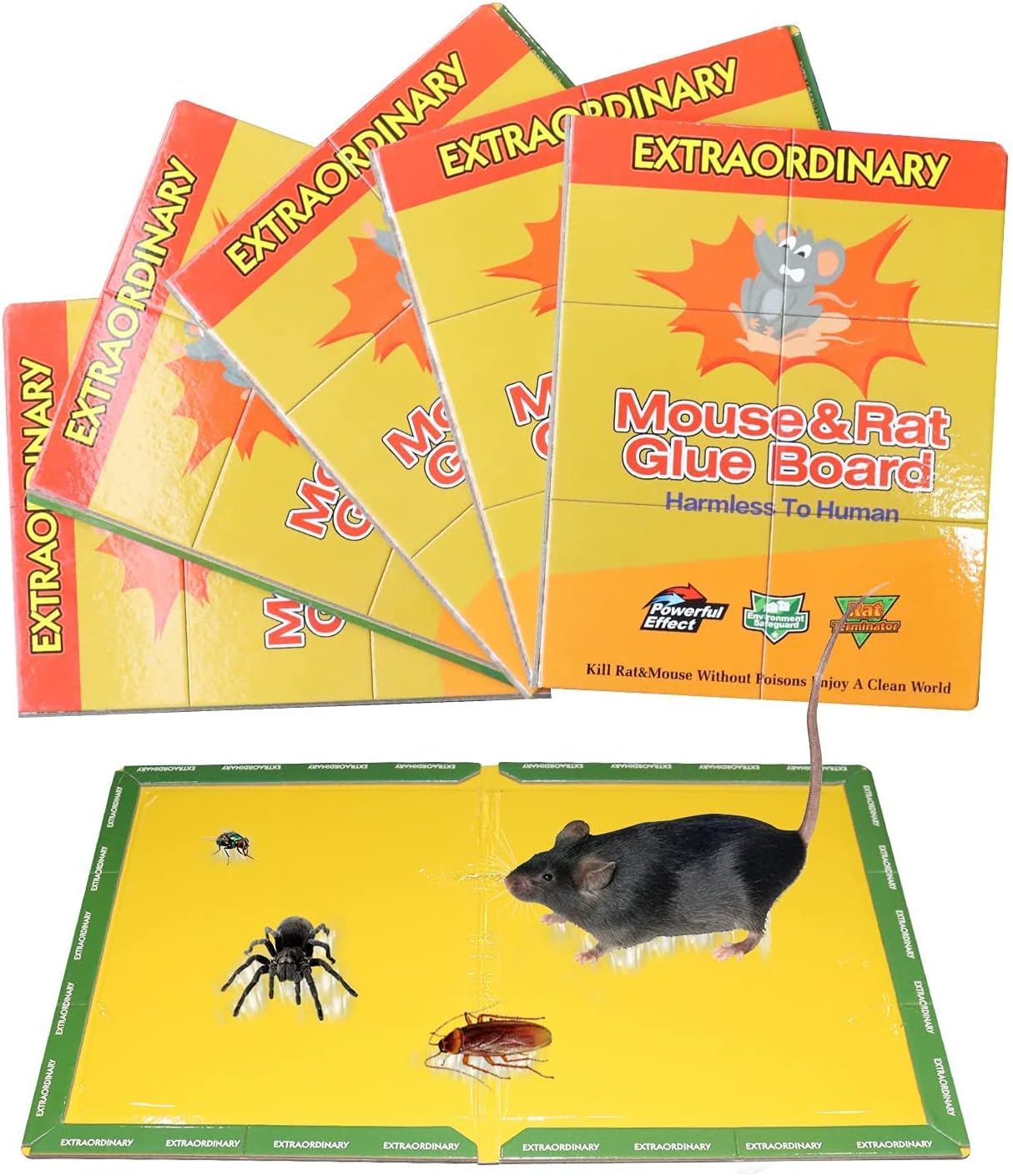 Mouse Glue Trap, Extra Large Rat Glue Traps, New Version Strongly Adhesive, Best Peanut Butter Scented Mouse Traps Glue Board for Mice & Rodent &Pests & Bug & Ant & Spider 5 Pack