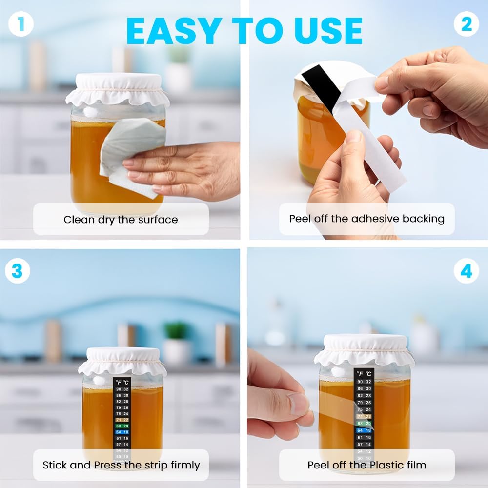 Tira Termómetro Adhesiva, Pantalla de Temperatura Digital para Fermentación, Elaboración, Vino, Cerveza, Kombucha o Acuarios. 50-90F (10-32C) Adhesivo 10 Paquetes (10)