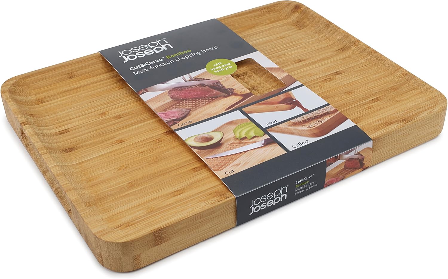 Joseph Joseph Cut & Carve Bamboo Cutting Board with Food Grip and Angled Surface Yellow Large