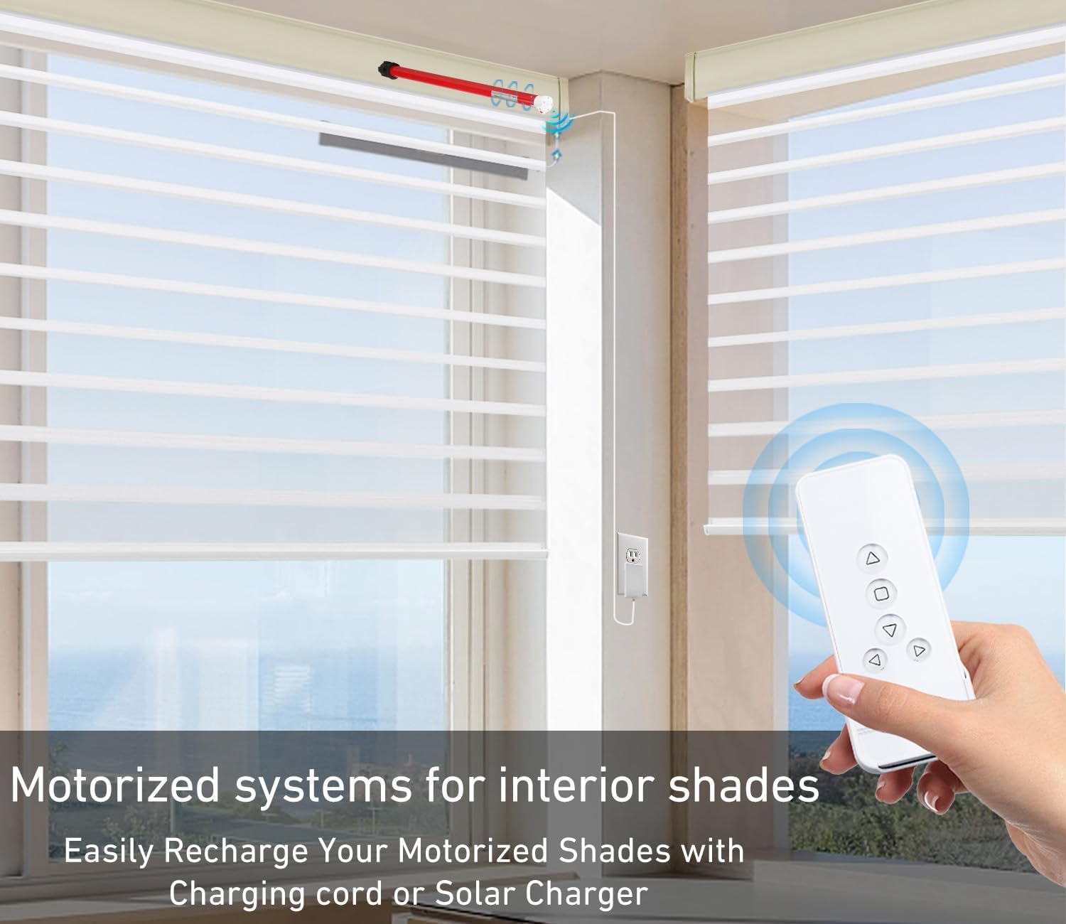 Roller blinds motor 32mm--Rechargeable roller shade motor kit offering a convenient and quiet motorized solution for Interior Window Coverings of Blinds, Shades, Roman/woven shades, sheer shades and horizontal blinds, mini blinds, Not compatible with aluminum blinds,vertical blinds