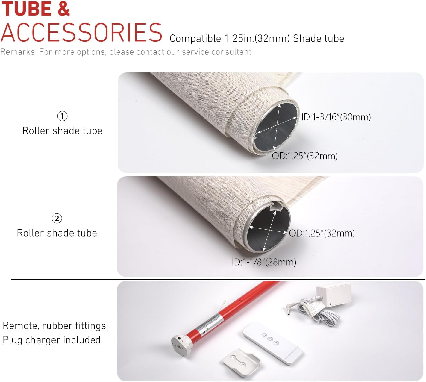 Compatibilities&Accessories--Compatible with Rollease 1.25" (32mm) Roller Shade Tube, including manual clutch/chain driven, spring driven, roman, motorized etc. Lifting capacity 6lb shades, be aware there are different diameters and functions of Rollerhouse tubes available, motor bracket/mounting adapter is not included and you need to select and purchase accordingly to the needs