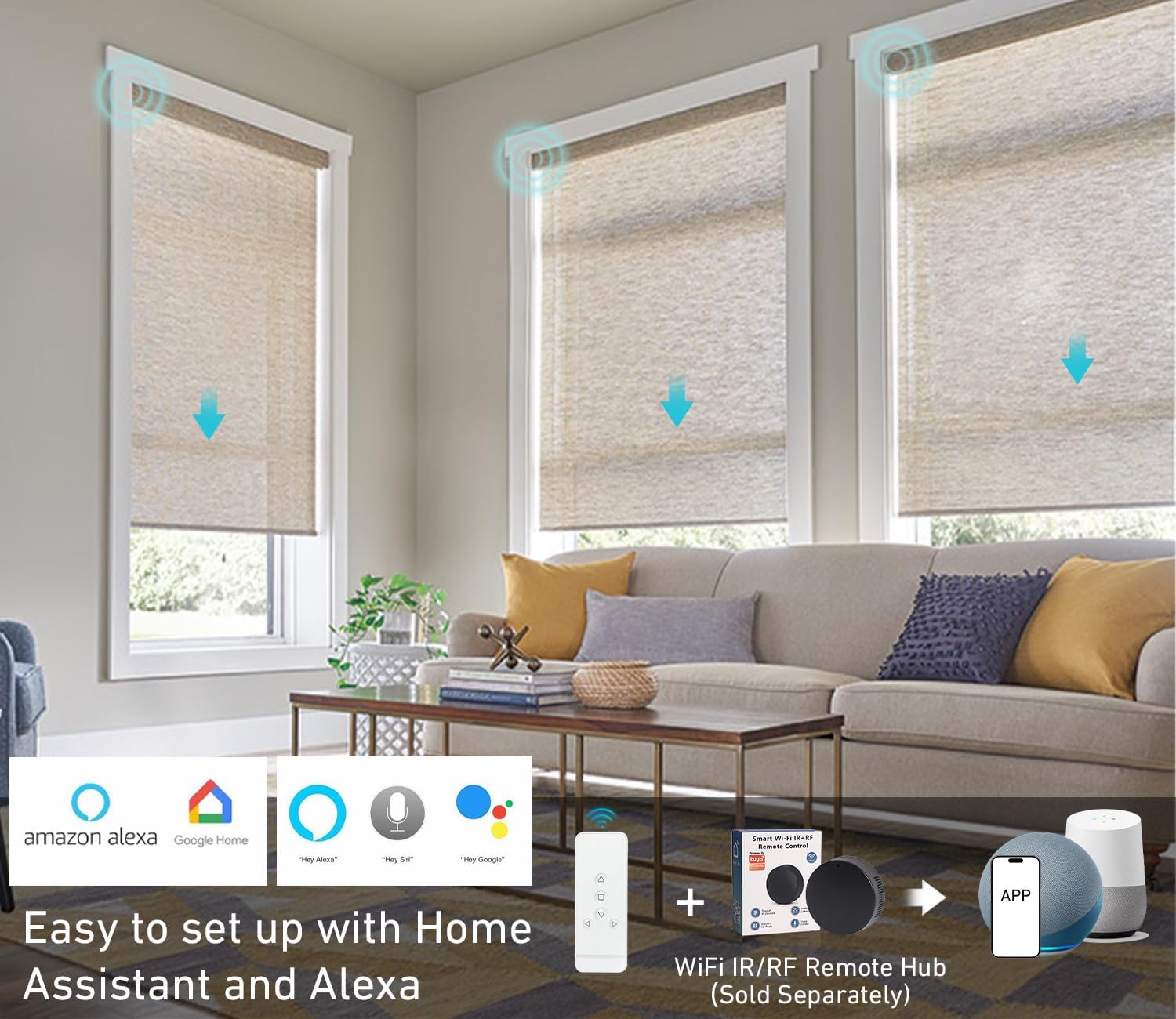 Google and Alexa integration--RF/Wifi gateway can be integrate with smarthome to learn the up and down buttons from the included remote and convert remote control to motorized with Alexa support