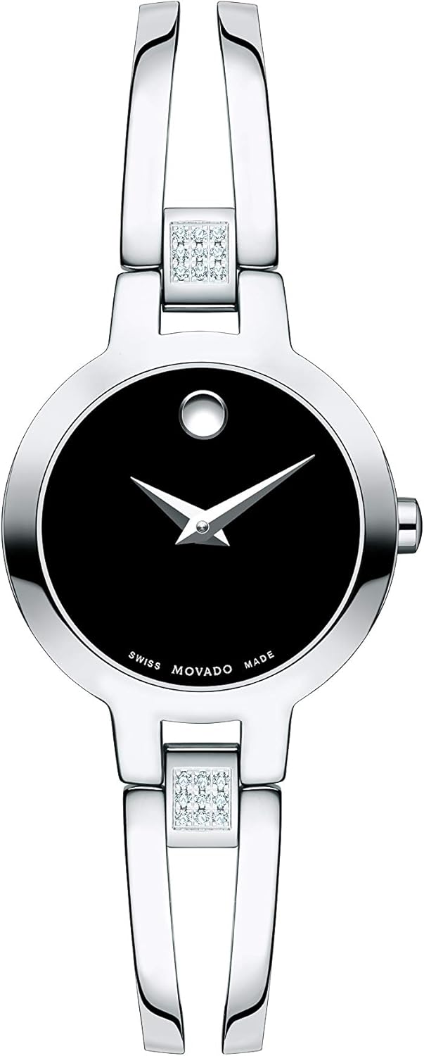 Reloj de mujer Movado Amorosa - Movimiento de cuarzo suizo, reloj con pulsera estilo brazalete de acero inoxidable con 18 diamantes - Resistencia al agua de 3 ATM - Reloj de lujo clásico de moda para ella - 24mm