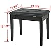 【Storage Compartment & Versatile Bench】 The storage area is right under the seat and is able to stay open as the hinge can lock open. Internal storage approx.19 1/8" L x 10 7/8" W x 2 3/8" D, roomy to keep your sheet music and bill or other accessories on hand, hinged lid is easy to open with folding lid support. It's also quite tall so it's perfect as a seat for almost anything including a table and for adults.
