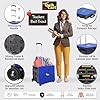 dbest products Quik Cart Collapsible Rolling Crate on Wheels for Teachers Tote Basket, 80 lbs Capacity, Blue Lid Made from Heavy Duty Plastic and used as a Seat