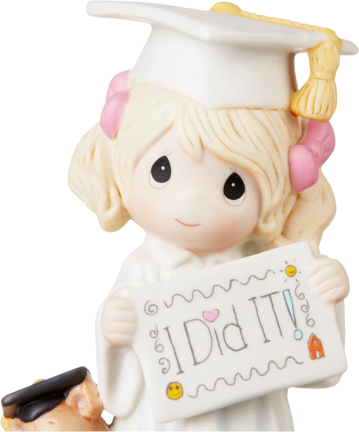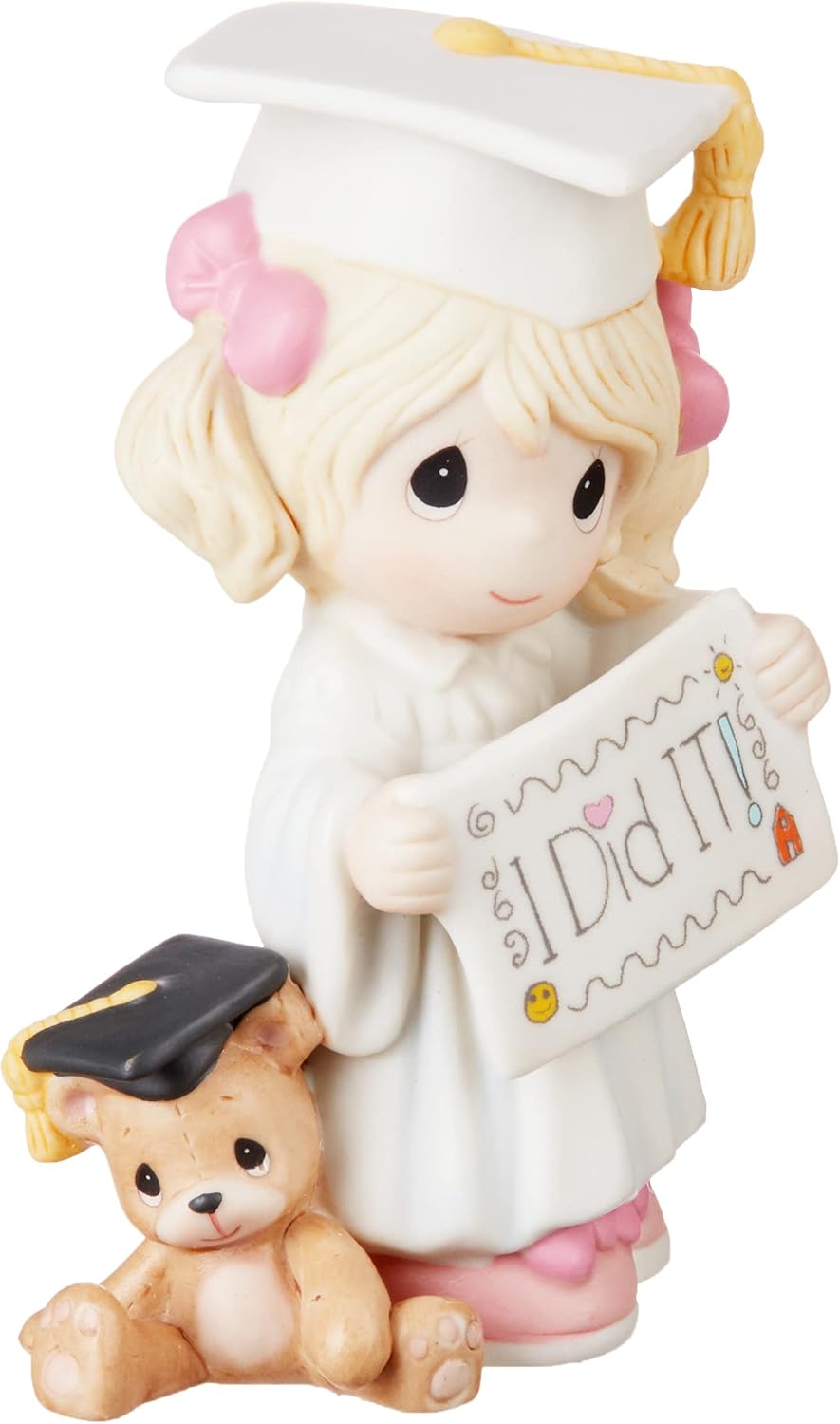 Graduation at any age is a Grand reason to celebrate! this Figurine features a young graduate filled with pride, her sweet teddy bear cheering her on as she takes on the next scholastic goal ahead. Long after her early years are just a memory, this adorable Figurine will serve as a reminder of how much she was loved and supported throughout her first school days. Perfect for the little girl moving on from Preschool or kindergarten, this Figurine makes a graduation gift that she will look fondly upon for years to come. Meticulously hand crafted of fine bisque porcelain and expertly hand painted. Approximately 4.5 inches high.