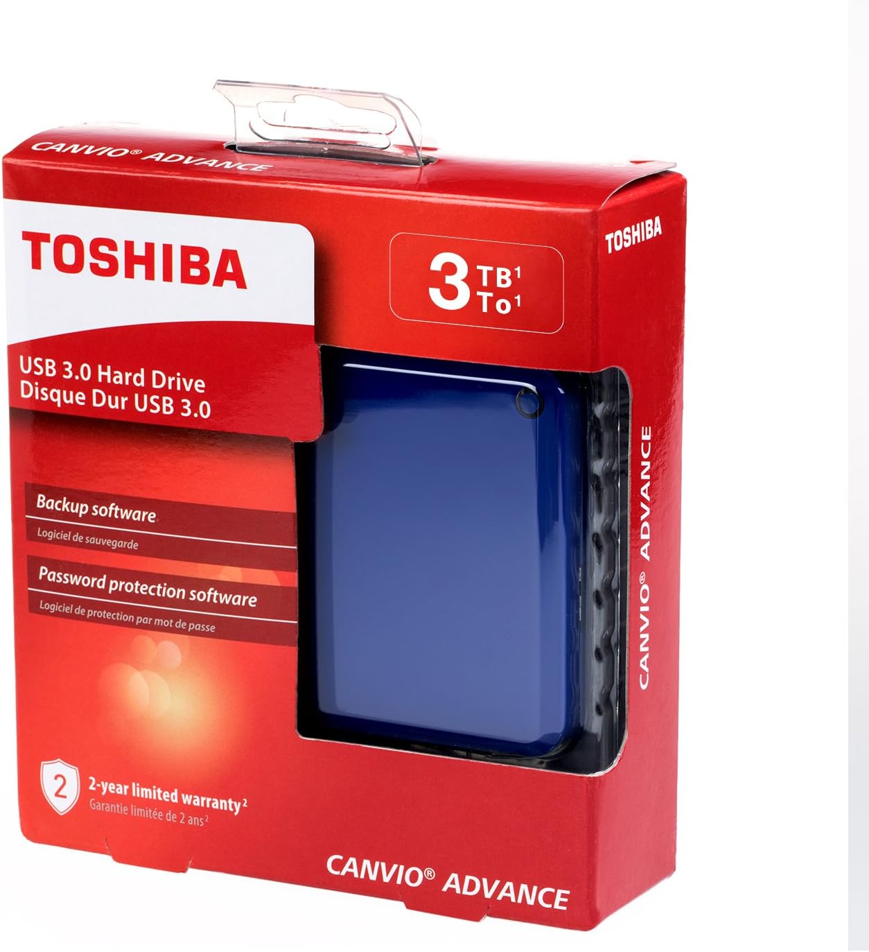 The Canvio Advance portable hard drive allows creators to do what they do best anywhere their lives take them offering high storage capacity, 24/7 access to your stored content and the time tested reliable performance they need. Whenever and wherever creativity strikes, Canvio Advance offers the space to create. The Toshiba Canvio Advance provides up to 3TB of storage so you can store thousands of pictures, videos, music, or a variety of large files on a small 2.5" portable drive. The new Toshiba Canvio Advance features a minimalist design as well as clean edges, a sleek, high gloss surface, and color options to inspire you it's your life, your style, your speed. Keep your files safe and secure with features such as password protection and scheduled backup. Work at the speed of inspiration with the lightning fast transfer speeds of Canvio Advance. With USB 3.0 you'll be able to transfer and backup files on the go while powering the drive through your laptop's USB connection. These new durable external hard drives are built to Toshiba's world class quality standards and backed by a standard 2 year warranty, so you can feel confident to create wherever inspiration moves you. Access all of your stored content with peace of mind from the Canvio Advance portable hard drive.