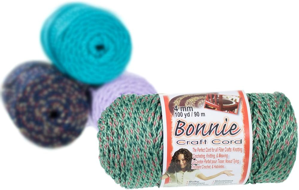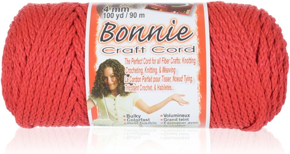 Craft County Bonnie Cord is a great cord for knitting, crocheting, macramé and more! Bonnie cord is a heat-fusible cord, meaning to fuse two ends together heat each end up and then hold them together. This is a 100% polyolefin fiber cord. The diameter of this cord is 4 millimeters. Works for wall hangings, decorations, ornaments, basket weaving, hanging lights and much more! There are a variety of colors available in lengths of 100 yards. Suggested crochet hook size N13/9mm. Care: hand wash dry flat do not bleach do not iron do not dry clean. This cord is USA Made.