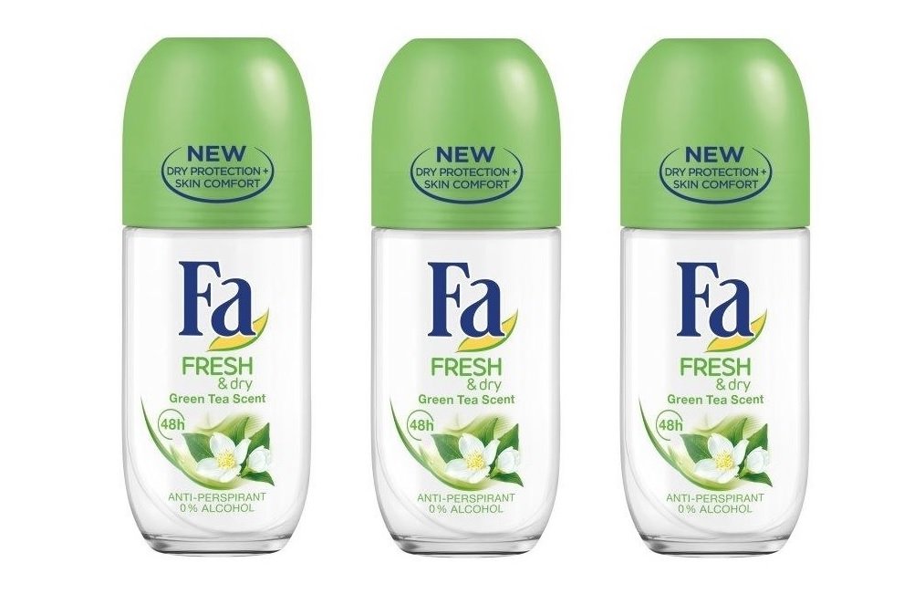 (Pack of 3 Bottles) Fa Fresh & Dry Green Tea Scent Women's Roll On Anti-perspirant Deodorant (Pack of 3 Bottles, 1.7oz / 50ml Each Bottle)