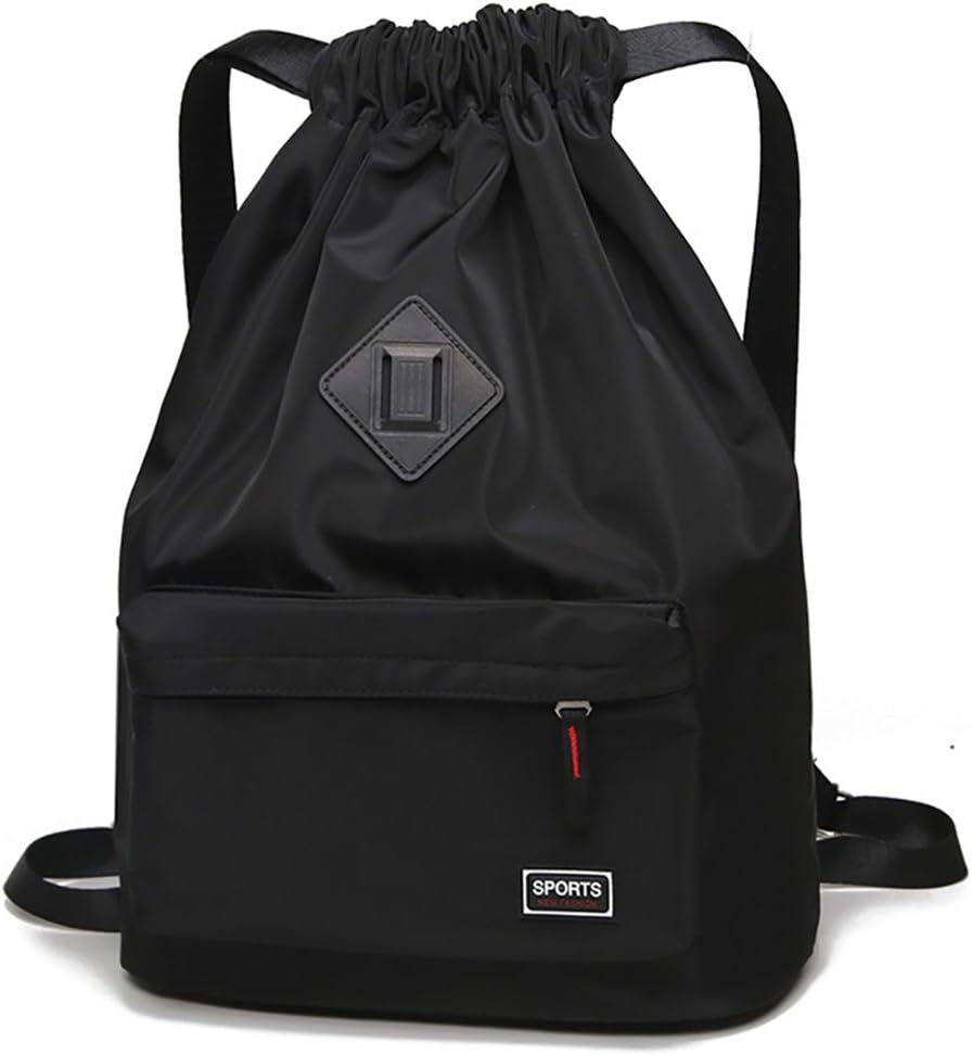 WHY CHOOSE OUR TRAVEL DRAWSTRING GYM BAG?1. Water resistant. Rainproof materilas make you no worry when it is raining or take it to swimming, beach or pool.2. Adjustable Shoulder Straps. Hanging low or high on your back? Do not worry!3. Large Storage. Many pockets and high capacity for you to use it as a gym bag or travel carry on bag.4. Double sturdy materials. Support years of use and no scratch, no tear.5. Super Light weight. Light material won't add burden to your carrying like other heavy backpacks.Use This Drawstring Bags forFootball Game (Football, sneakers, uniform, water bottle)Swim (Towel, toiletries and a swim suit)School (Books, pencil box, water bottle)Picnic (Pad, snack, water bottle)Dance (Shoes, leotard, snacks)Gymnastics (Warm ups, hair ties & brush)Marching Band (Music folder, snacks, cell phone, money, water bottle, hats, and gloves)Cross Country (Tennis shoes, jersey, water bottle, phone)Ballroom Dance (Shoes, mints)Mountain Biking (Gloves, race plates, snacks, sunscreen, cowbells, water bottle, shoes, helmet hooks onto the outside strap)Much More Convenient & Lightweight Than Using A Bulky Backpack! LIFE-TIME SATISFACTION!SPECIFICATIONPockets - Style 1: 1 Main Compatment + 1 Inside Zipper Pocket + 1 Outside Front Zipper Pocket + 1 Anti-theft Back Zipper Pocket- Style 2: 1 Main Compatment + 1 Dry Wet Separated Clear Bag + 1 Front Zipper PocketClosure Type- Drawstring closureStraps- Adjustable, comfortableSize- Style 1: 17.3 x 12.6 x 5.9''- Style 2: 15.7 x 6.3 x 11.8''Weight- Style 1: 0.8 lb- Style 2: 0.77 lbPACKAGE INCLUDED1 x Drawstring Backpack Bag