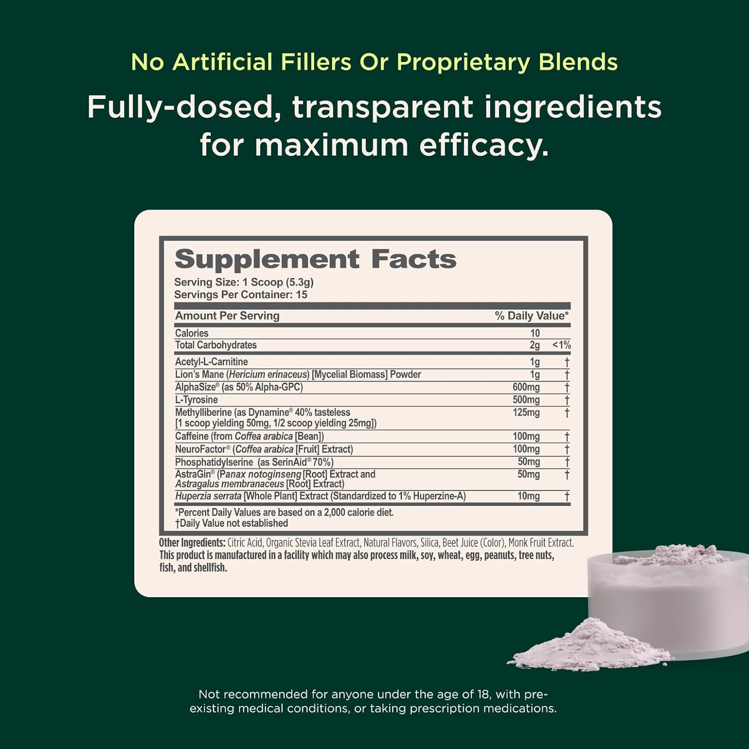 Pensamiento Claro y Protección Cerebral: NeuroFactor ayuda a eliminar la niebla mental y apoya el factor neurotrófico derivado del cerebro (BDNF), ayudando en la longevidad cognitiva y la salud cerebral general. Adiós a la neblina mental y hola al rendimiento máximo