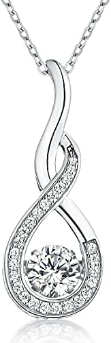 JO WISDOM Infinity Necklaces,925 Sterling Silver Cubic Zirconia Infinity Knot with Dancing Diamond Pendant Necklace,Birthstone Jewelry for Women