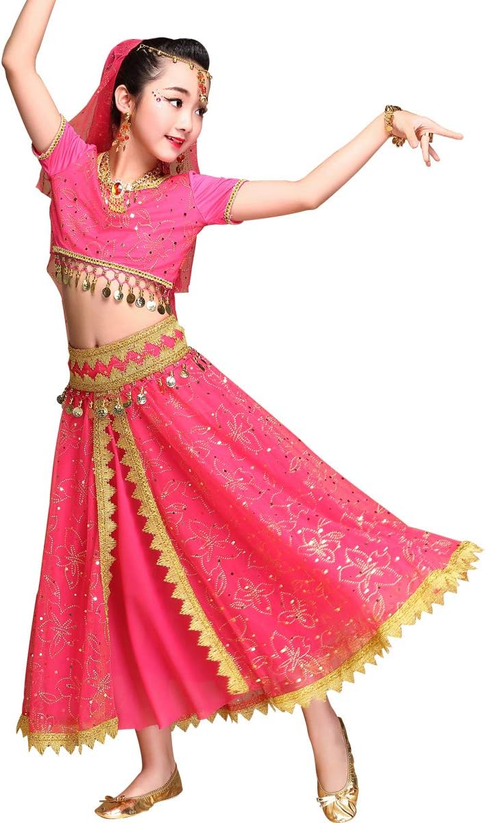 Vestido de Baile del Vientre Bollywood - Traje de Halloween, Vestido de Baile de Chiffón con Velo para la Cabeza para Niñas