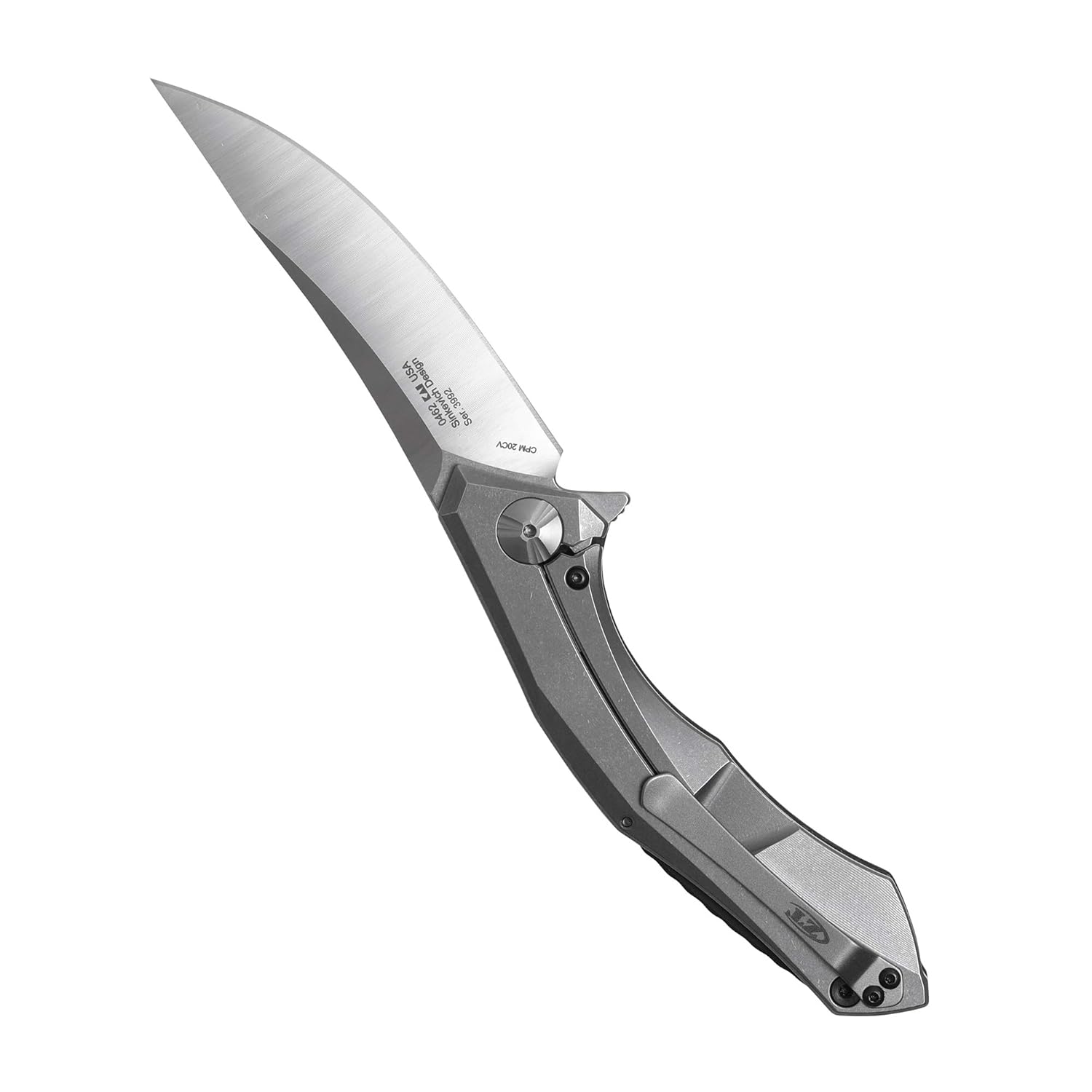 Zero Tolerance Sinkevich Pocketknife (0462); CPM 20CV Satin-Finished Crucible Blade Steel; Red and Gray Carbon Fiber Front Scale; Titanium Back; KVT Manual Open; Reversible Pocketclip; 3.7 oz, 8.9 inch