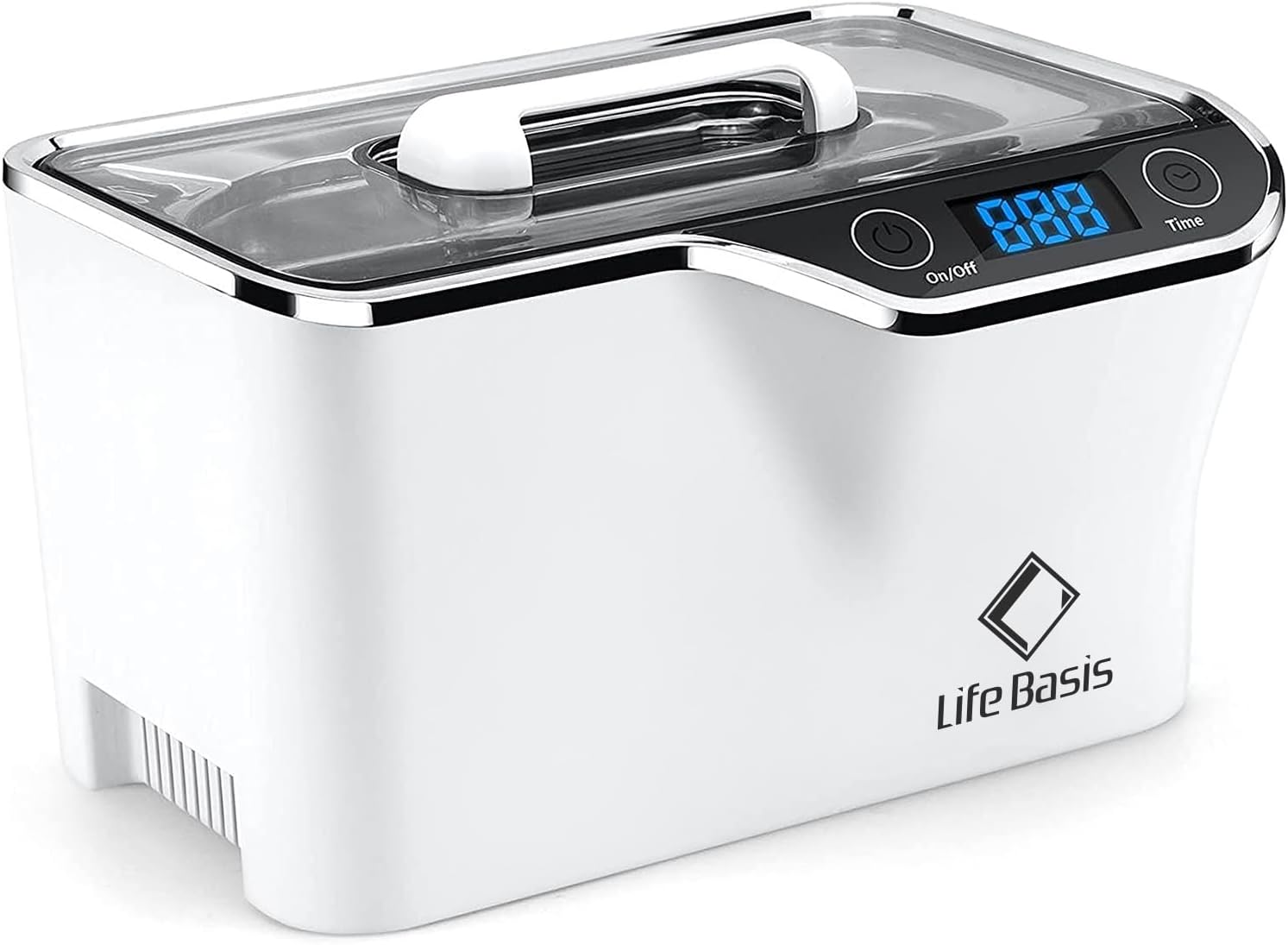Limpiador ultrasónico de joyas Life Basis Máquina limpiadora ultrasónica portátil de 600 ml con soporte de reloj para joyas, anteojos, retenedor, relojes, dentaduras postizas, anillos, monedas, 100-120 V 35 W