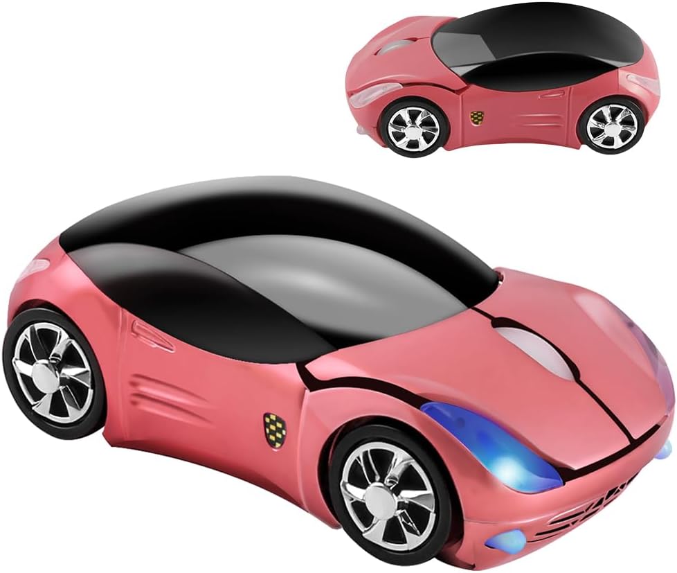 Wireless Mouse Cute Sport Car Shape Mouse Optical Ergonomic Gaming Mice Mini Small Office Gift for Boy Girl Men Women Kids Mom Dad with USB Receiver for PC Laptop Computer Mac,1600DPI 3 Buttons