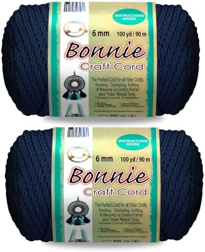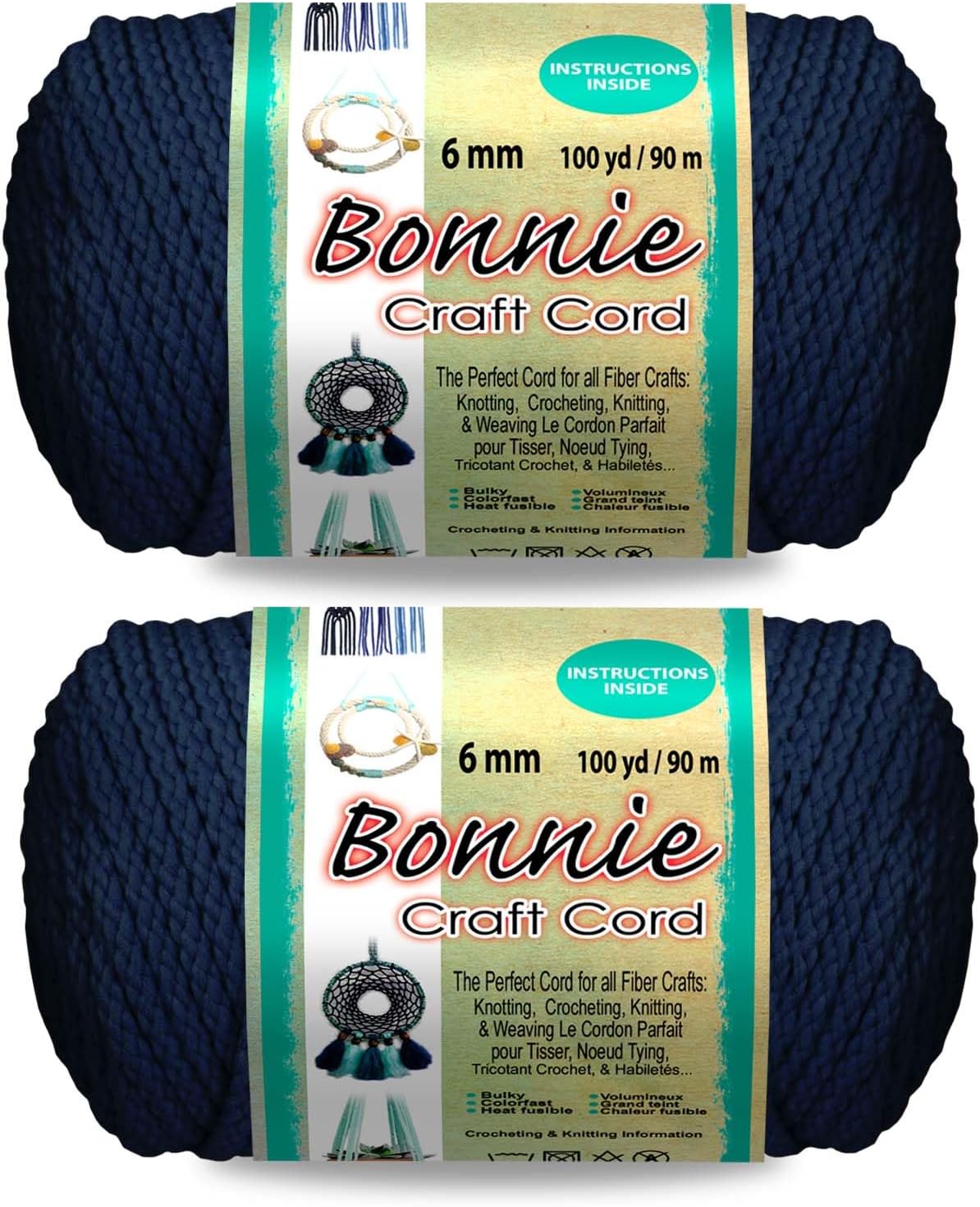 Pepperell Bonnie Braid Macrame Cord | 6mm x 100yd Navy (Value 2-Pack) | Twisted Polypropylene Cord for DIY Crafts, Plant Hangers, Wall Hangings, Crochet & Macrame | Long-Lasting, Vibrant Color
