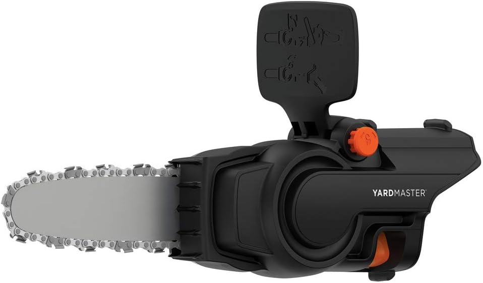 This attachment for BLACK+DECKER chainsaw is part of our YARDMASTER Interchangeable System - One Solution for Your Yardwork. Its tool-less tensioning system makes it quick and easy to adjust the battery operated chainsaw. The 10-inch bar and chain is designed for smooth cuts. Plus, when attached to the extension pole, it has an 8-1/2-foot reach. It can be attached to the YARDMASTER kit base unit or extension pole. YARDMASTER kit is sold separately.
