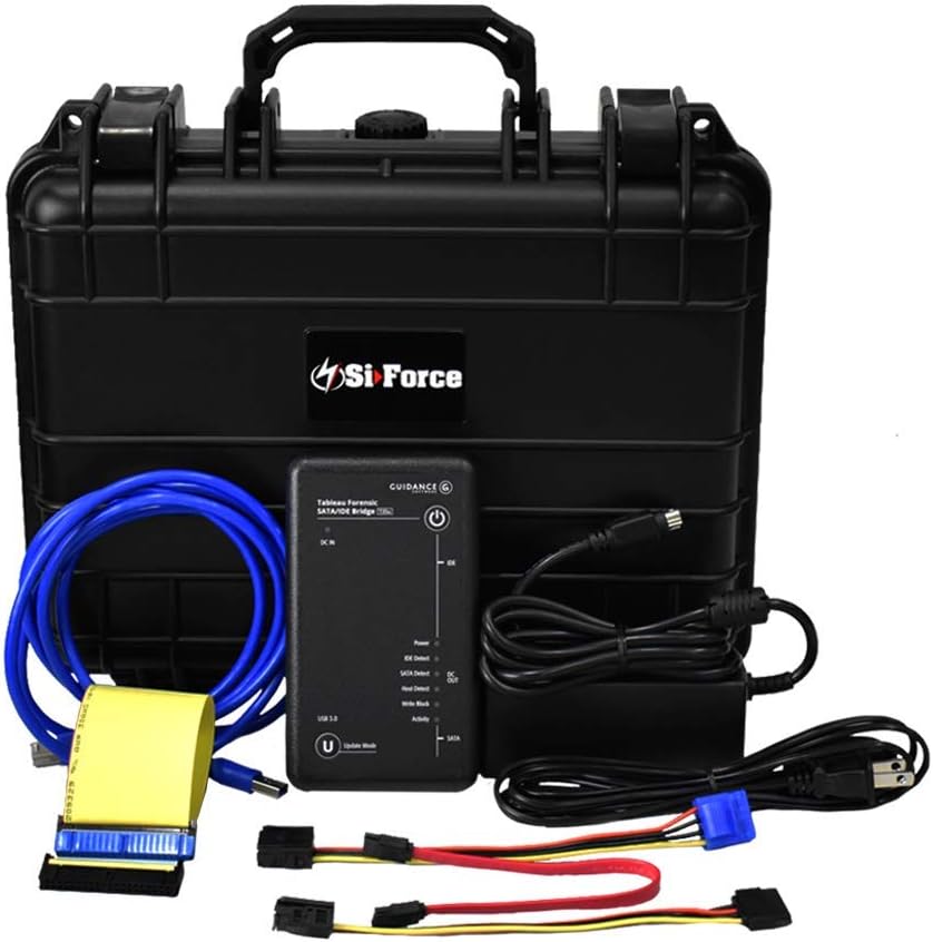 Tableau TK35U+ Kit includes: T35u Tableau Forensic SATA/IDE Bridge, TP7 Power Supply + Line Cord, TC2-8-R2 Tableau Molex to 3M Drive Power Cable, TC3-8 Tableau SATA Signal Cable, TC5-8-R2 Tableau SATA to 3M Drive Power Cable, TC6-8 Tableau IDE Cable, TC-USB3 Tableau USB 3.0 A to B Cable, T35u Quick Reference Guide, SiForce Rugged Case.