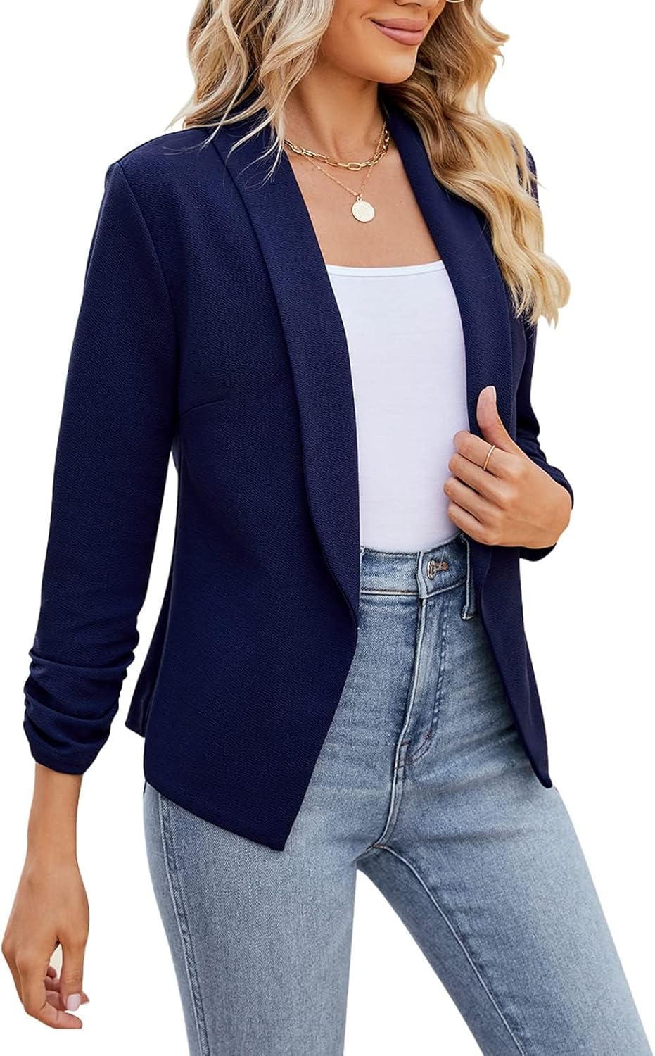 POGTMM Women 3/4 Sleeve Blazer Open Front Cardigan Jacket Work Office Blazer