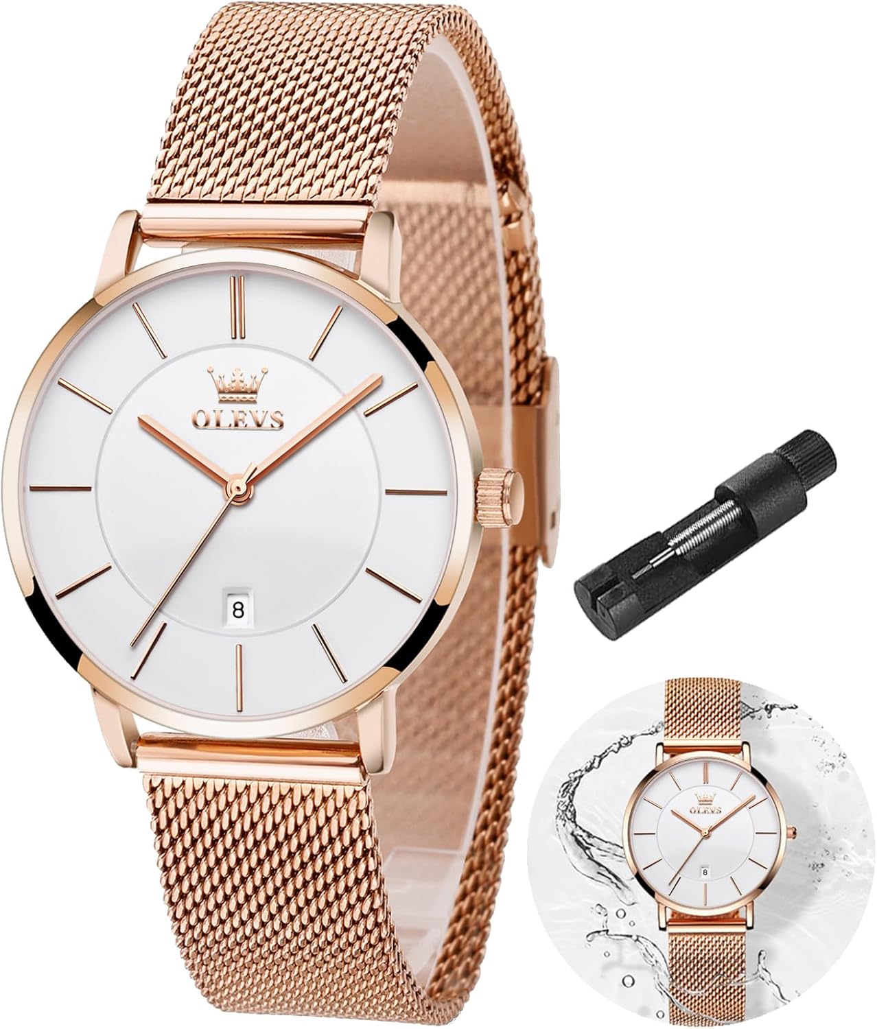 Reloj de mujer OLEVS Lujo Vestido Oro Rosa Reloj delgado fino ligero de acero inoxidable Reloj de pulsera para mujer impermeable