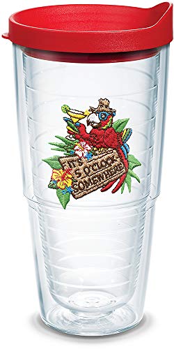 Tervis Margaritaville - It's 5 O'Clock Somewhere - Red Parrot Made in USA Double Walled Insulated Tumbler Travel Cup Keeps Drinks Cold & Hot, 24oz, Classic