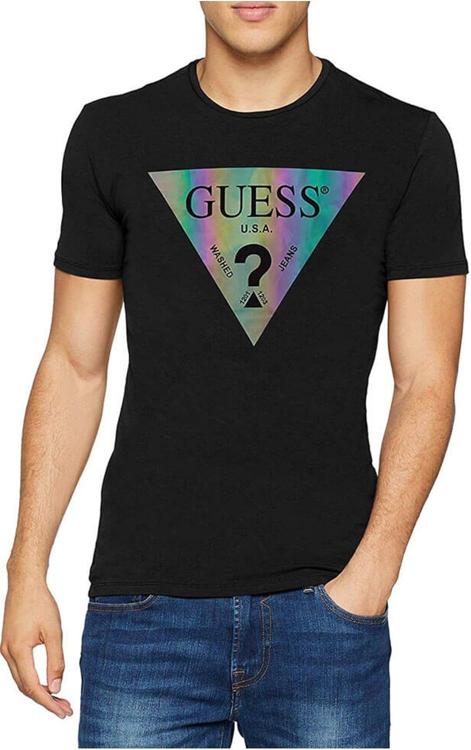 REBAJAS Camiseta con Logotipo Iridescente GUESS Jet Black