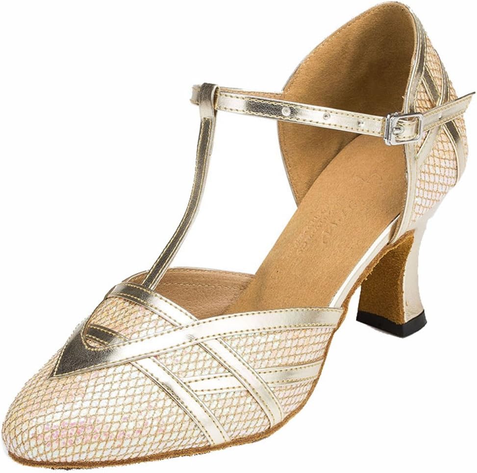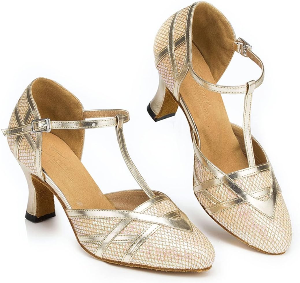 TDA Women's T-Strap Glitter Synthetic Salsa Tango Ballroom Latin Party Dance Shoes
