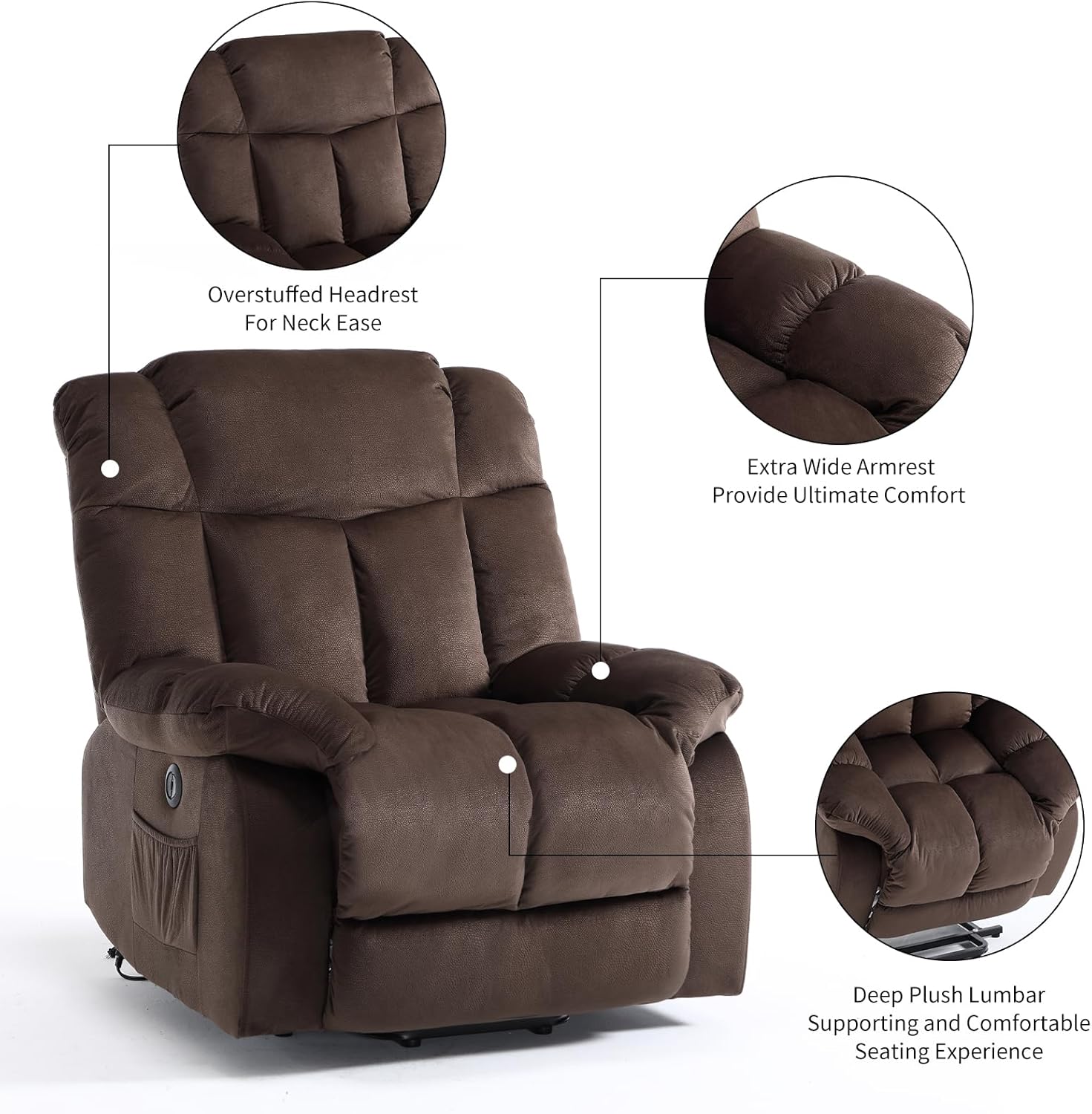 CANMOV Power Lift Electric Recliner Chair for Elderly- Heavy Duty and Safety Motion Reclining Mechanism-Antiskid Fabric Sofa for Living Room, Chocolate