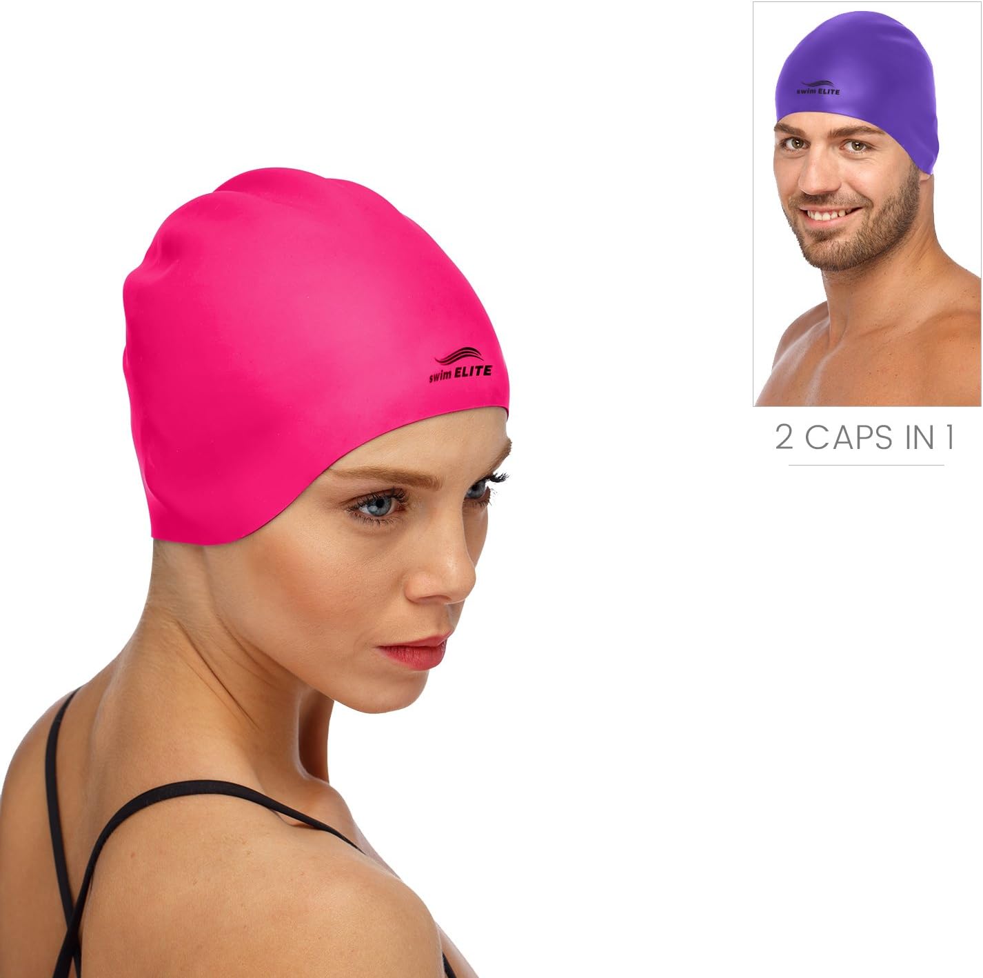 2 In 1 Reversible Design: These bathing caps for women swimming use a reversible design that allows you to wear them from both sides and features 2 unique colors. The swimming cap slides on easily and stays securely in place to ensure a comfortable fit