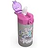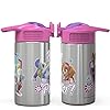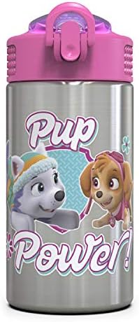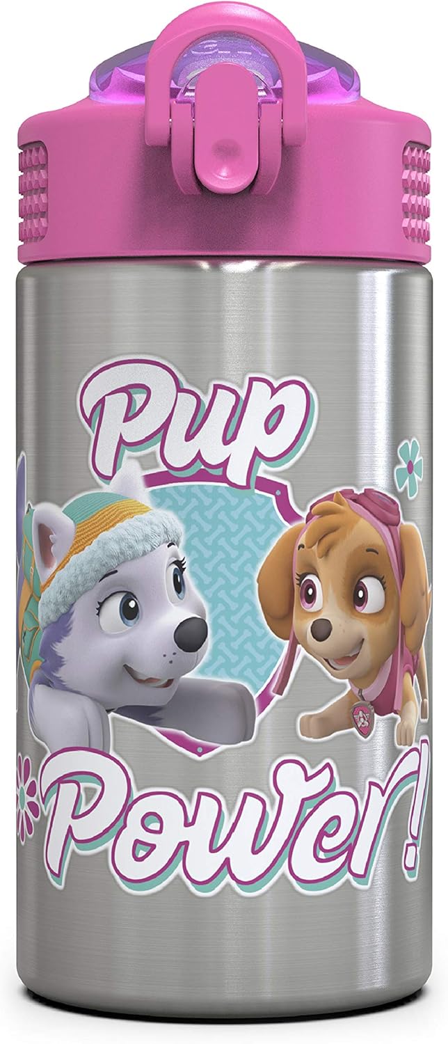 Zak Designs Paw Patrol Skye - Stainless Steel Water Bottle with One Hand Operation Action Lid and Built-in Carrying Loop, Straw Spout is Perfect for Kids (15.5 oz)