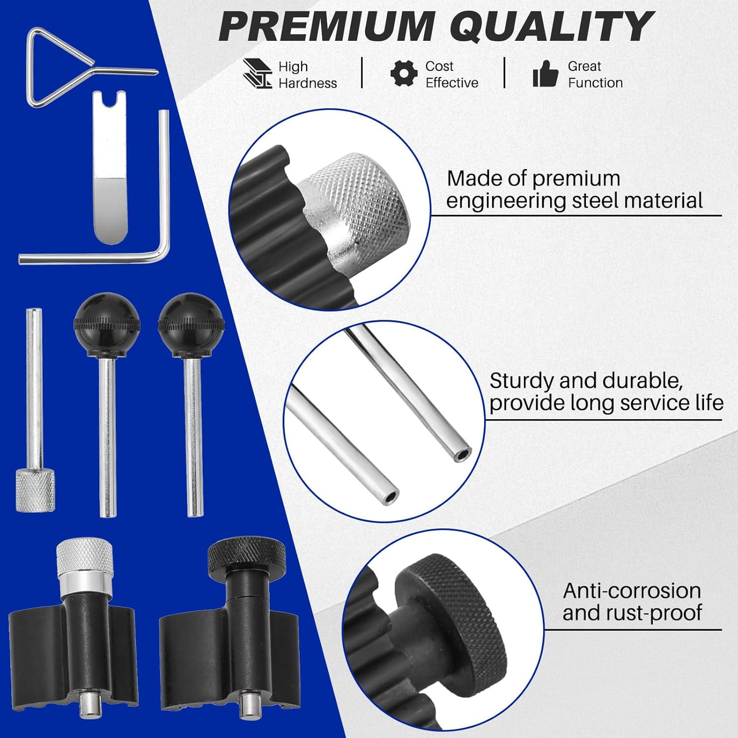 MATERIAL DE PRIMERA CALIDAD: La herramienta de bloqueo de cárter para alineación de tiempo está fabricada en acero de ingeniería de alta calidad, garantizando robustez y durabilidad. Sus propiedades anticorrosivas y a prueba de óxido aumentan su longevidad, proporcionando una solución rentable.