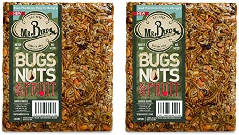 Bugs, Nuts & Fruit A delectable feast for an amazing variety of wild birds. This formula is sure to attract your favorite feathered friends with it's fantastic blend of mealworms, pecans, sunflower hearts, raisins and cranberries. BUG APPETIT!