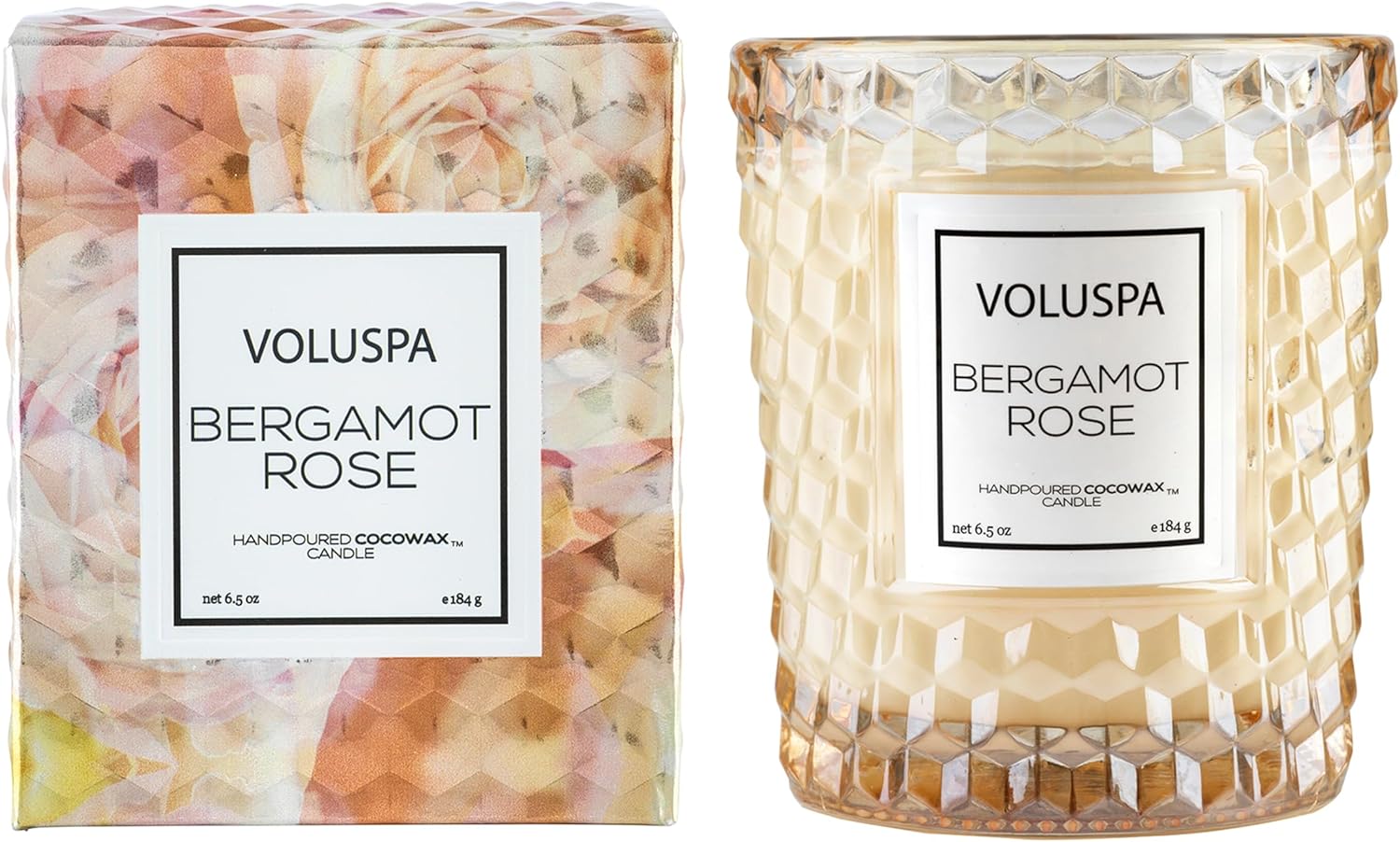 Voluspa Bergamot Rose, Classic Candle Jar, 6.5 oz, 40 Hour Burn Time, Coconut Wax for Clean Burning, Handcrafted in The USA
