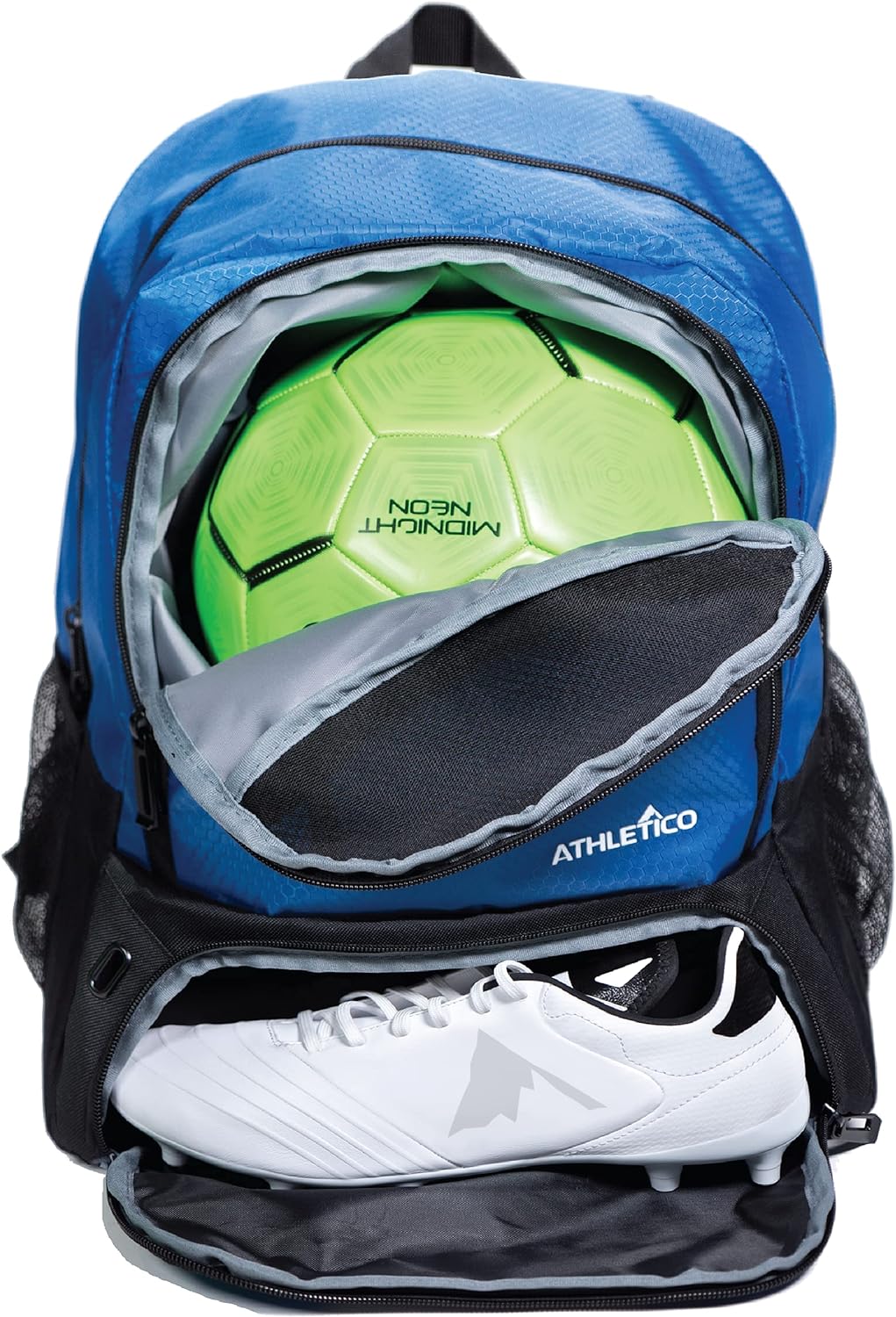 LARGE VENTED BALL COMPARTMENT - The front ball compartment is perfect for carrying a soccer ball, volleyball, basketball, or football
