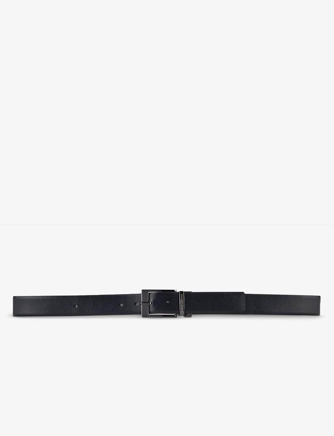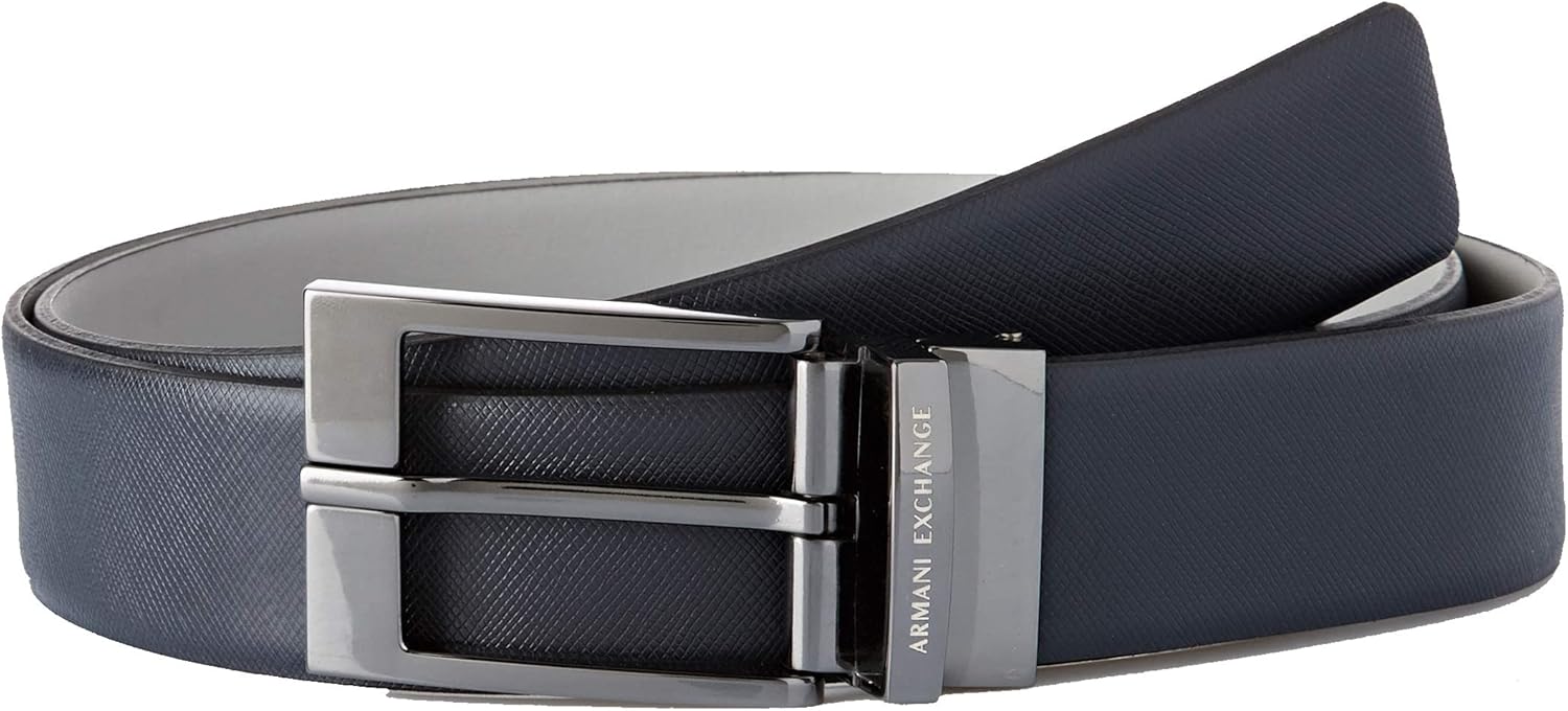 Armani Exchange Men's Leather Belt With Plaque, Black, One Size