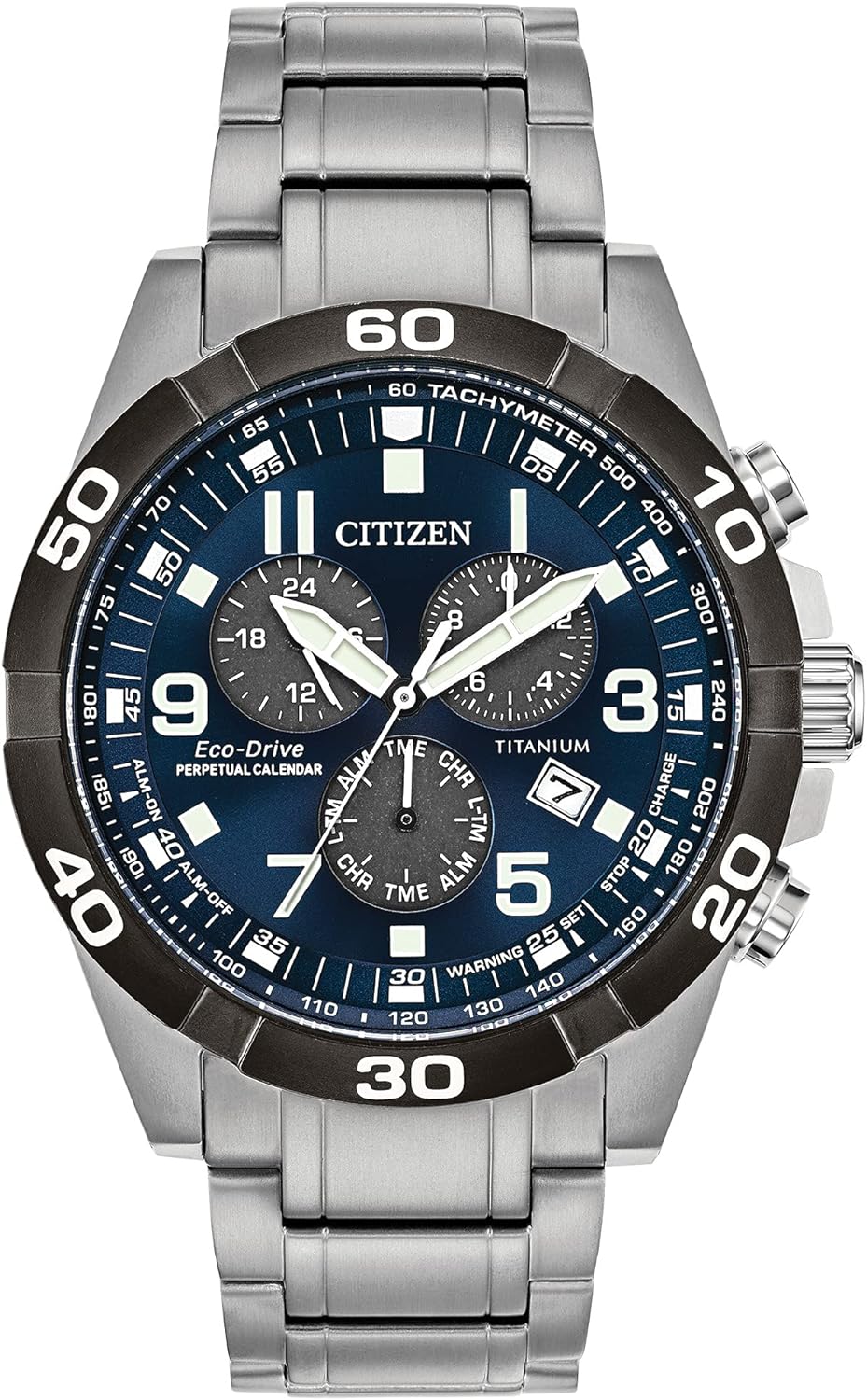 Lleva las cosas a otro nivel con este reloj CITIZEN Brycen de Super Titanio™. Incluye un cronógrafo de 1/20 de segundo hasta 60 minutos, tiempo de 12/24 horas, calendario perpetuo, doble hora, tacómetro, fecha y alarma. La caja y la correa de Super Titanio™ se completan con una esfera de color azul medianoche. Con nuestra tecnología Eco-Drive: alimentado por la luz, cualquier luz. Nunca necesita batería. Número de calibre E820.