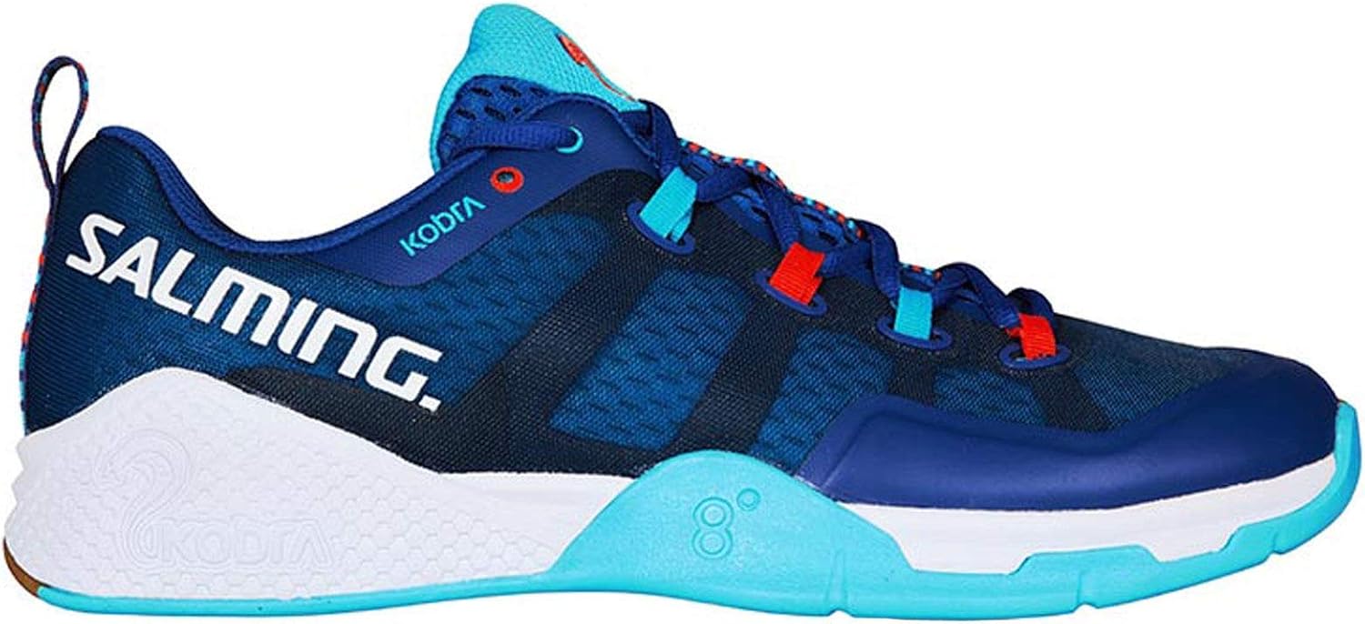 SALMING MEN'S KOBRA 2 SQUASH INDOOR COURT SPORTS SHOES The Salming Kobra 2 is a fast paced unique combination of lightweight, cushioning and stability that instantly has become a favourite among our athletes. The second generation has the new Recoil ERF - Energy Return Foam - midsole, which is a super lightweight cushioning foam that releases a higher rebound energy effect. In the heel impact zone we have replaced the Recoil R with the new SoftFOAM compound that has 70% better shock absorbing properties than standard EVA midsole. The upper has been powered with lighter and thinner reinforced areas. Combined, all these improvements will help you maximize your performance. FEATURES: - Drop: 8 mm - Gender: Men - Stack: 22 mm center of heel, 14 mm ball of foot - Midsole: Recoil ERF+SoftFOAM - Outsole: HexaGrip - Lining: Mesh - US 7.5 -14.0