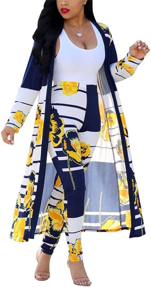 Womens Floral Print Long Sleeve Cardigan Cover up Long Pants 2 Piece Outfits Set